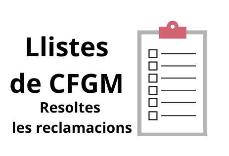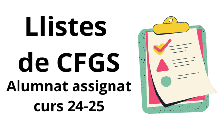 En el següent enllaç trobareu la llista d’alumnat assignat a Cicles Formatius de Grau Mitjà en segona tanda a data 31-07-24. LLISTA D’ALUMNAT DE CFGM ASSIGNATS EN SEGONA TANDA