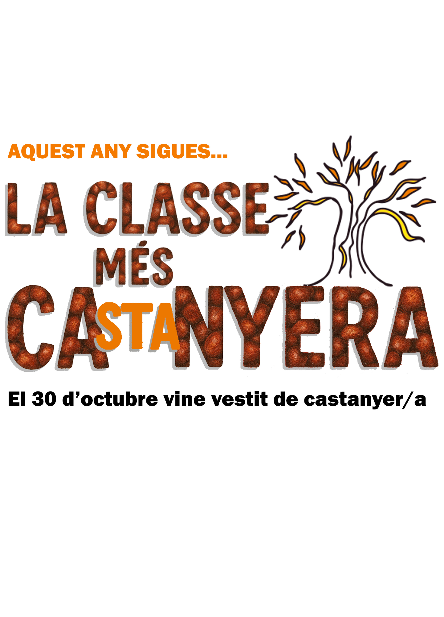 Des de la Comissió d’Esdeveniments i Diades us animem a tots/es a venir vestits de castanyers i castanyeres el pròxim dijous 30 d’octubre. Busquem la Classe més CAstaNYERA!