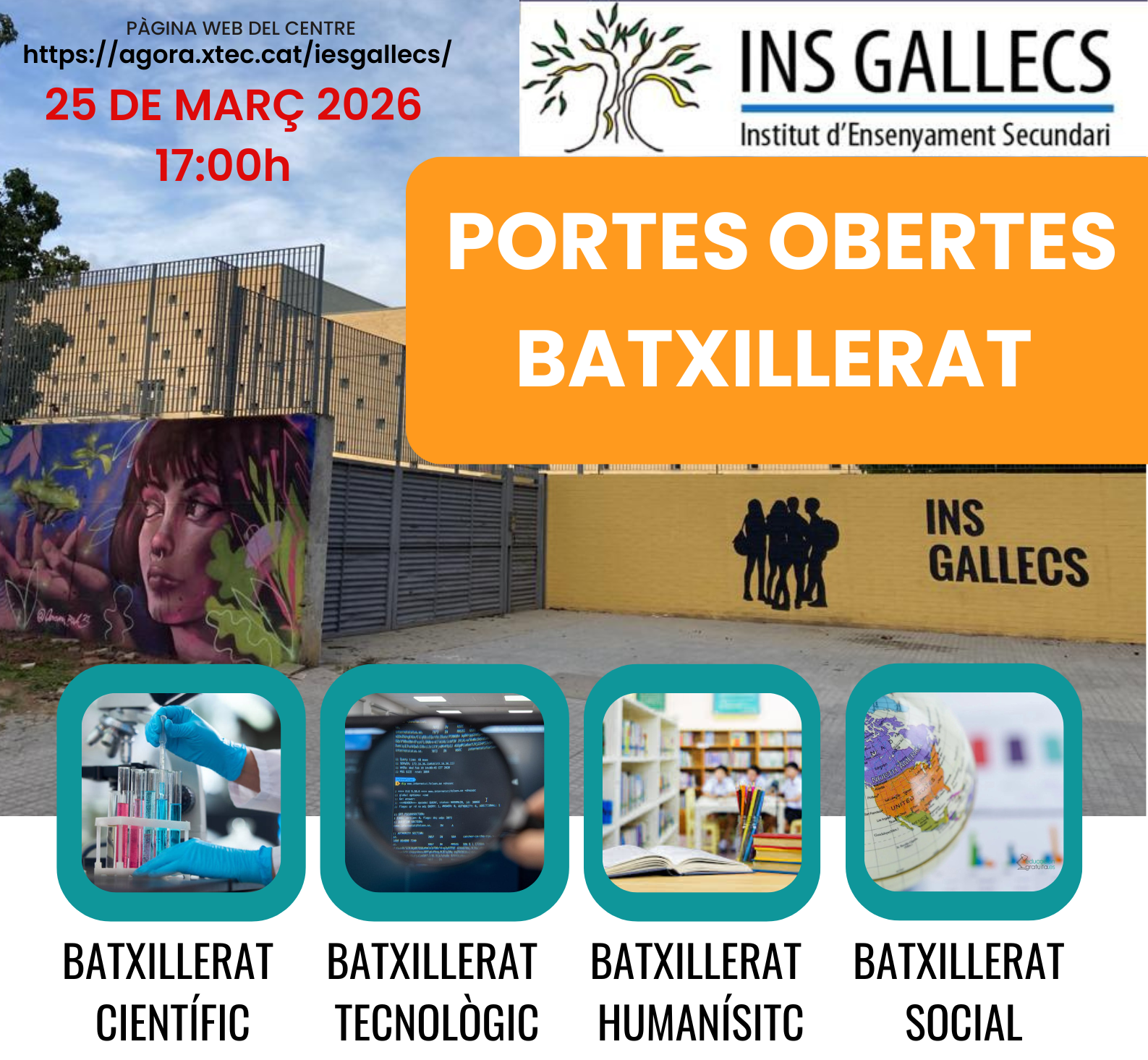 En el següent enllaç podreu accedir a un formulari de cita prèvia per a la sessió informativa del 25 de març a les 17:00h. Després de la sessió es farà una visita per les instal·lacions del centre. Quan feu la inscripció rebreu un correu electrònic de confirmació.