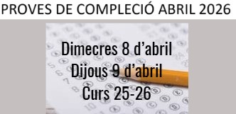 A continuació trobareu el calendari de les proves de compleció que es faran al llarg d’aquest mes d’abril del curs 2026. PROVES DE COMPLECIÓ ABRIL 2026