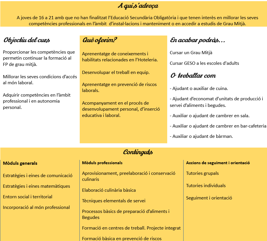 (abans Auxiliar d’hoteleria: cuina i serveis de restauració)