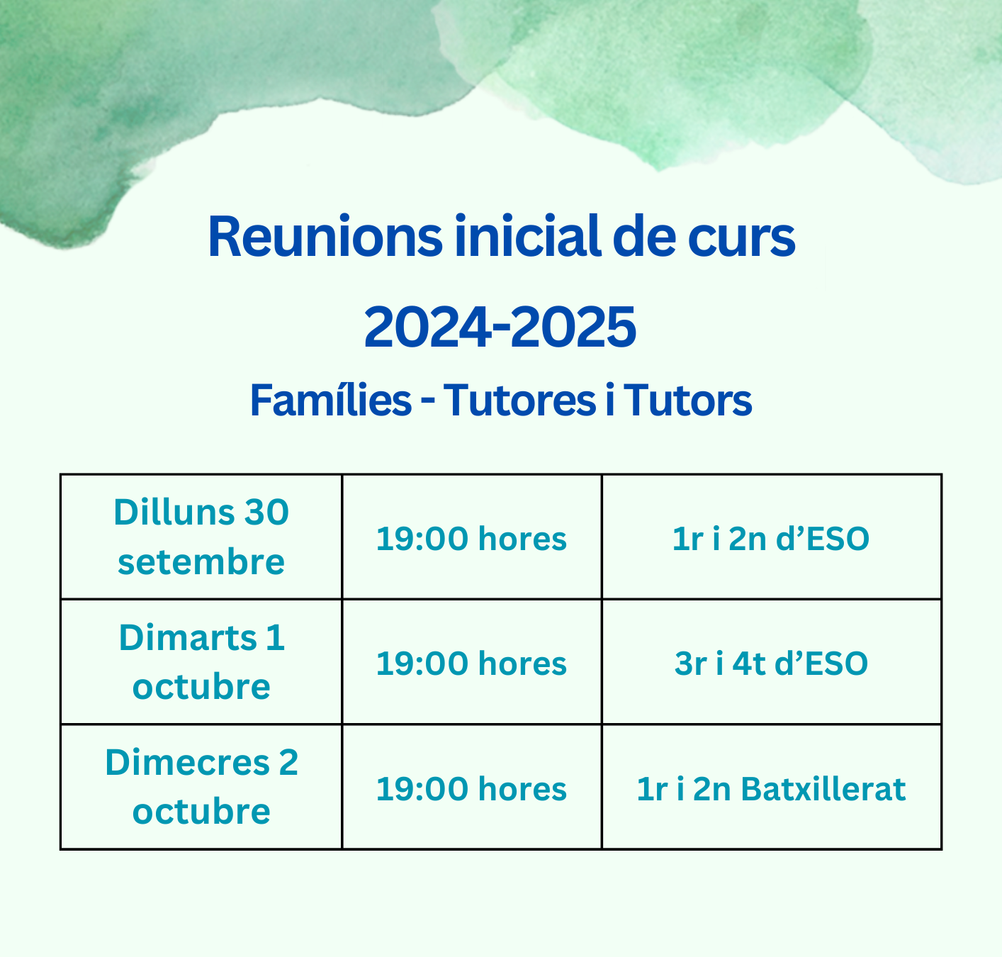 Reunions inicials de curs amb les famílies d’ESO i Batxillerat Feu un comentari / Per admin / 26/09/2024 / General
