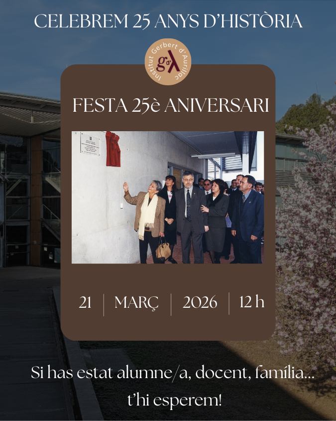 El passat 28 de gener, una representació de l’alumnat d’ESO de l’Institut Gerbert d’Aurillac va participar en la Copa Cangur, una competició que desafia els coneixements matemàtics i l’enginy mitjançant la resolució cooperativa de problemes. L’esdeveniment, que aplega centres d’arreu de Catalunya, va tenir com a seu per al subgrup de la Catalunya Central el […]
