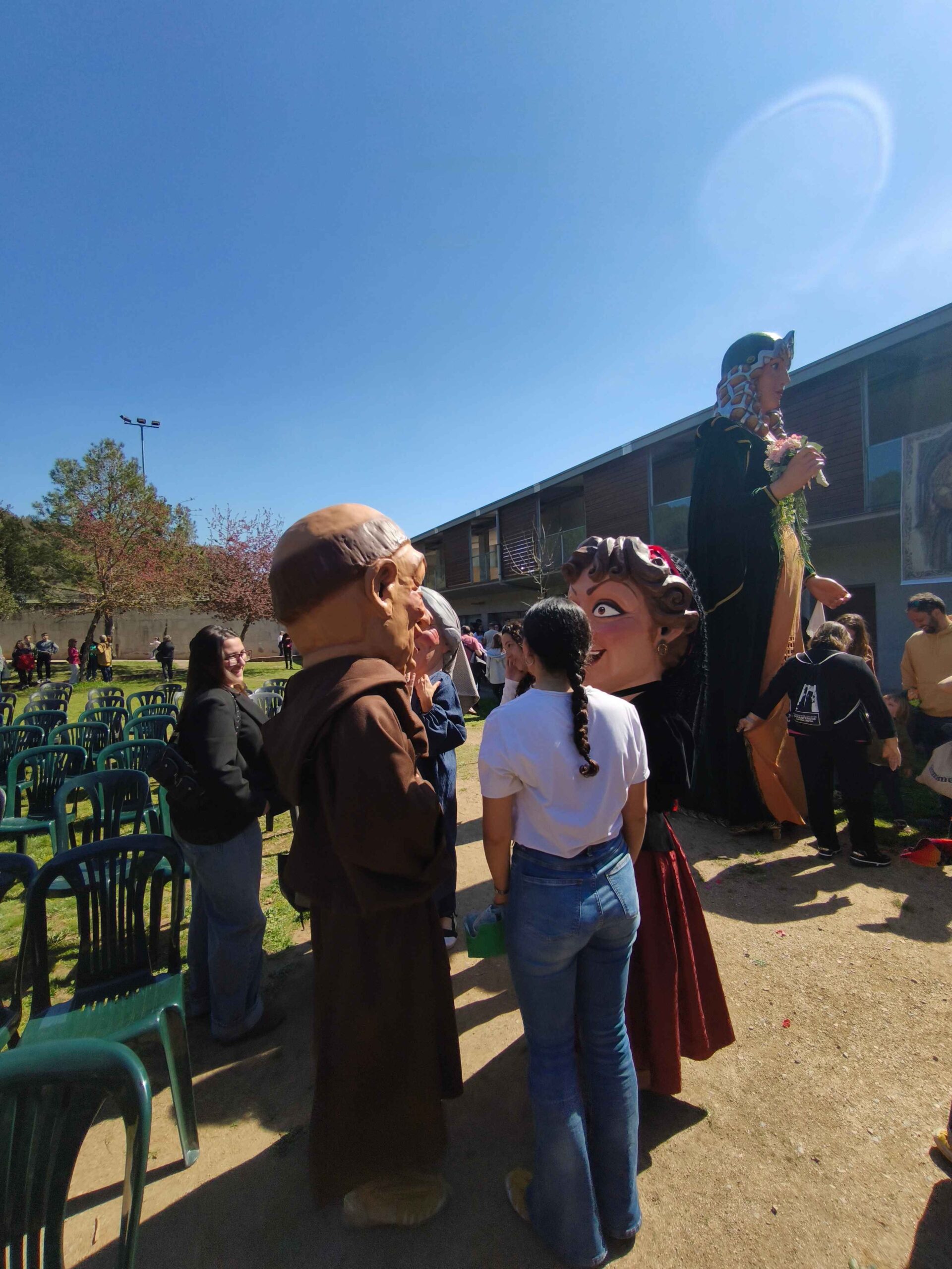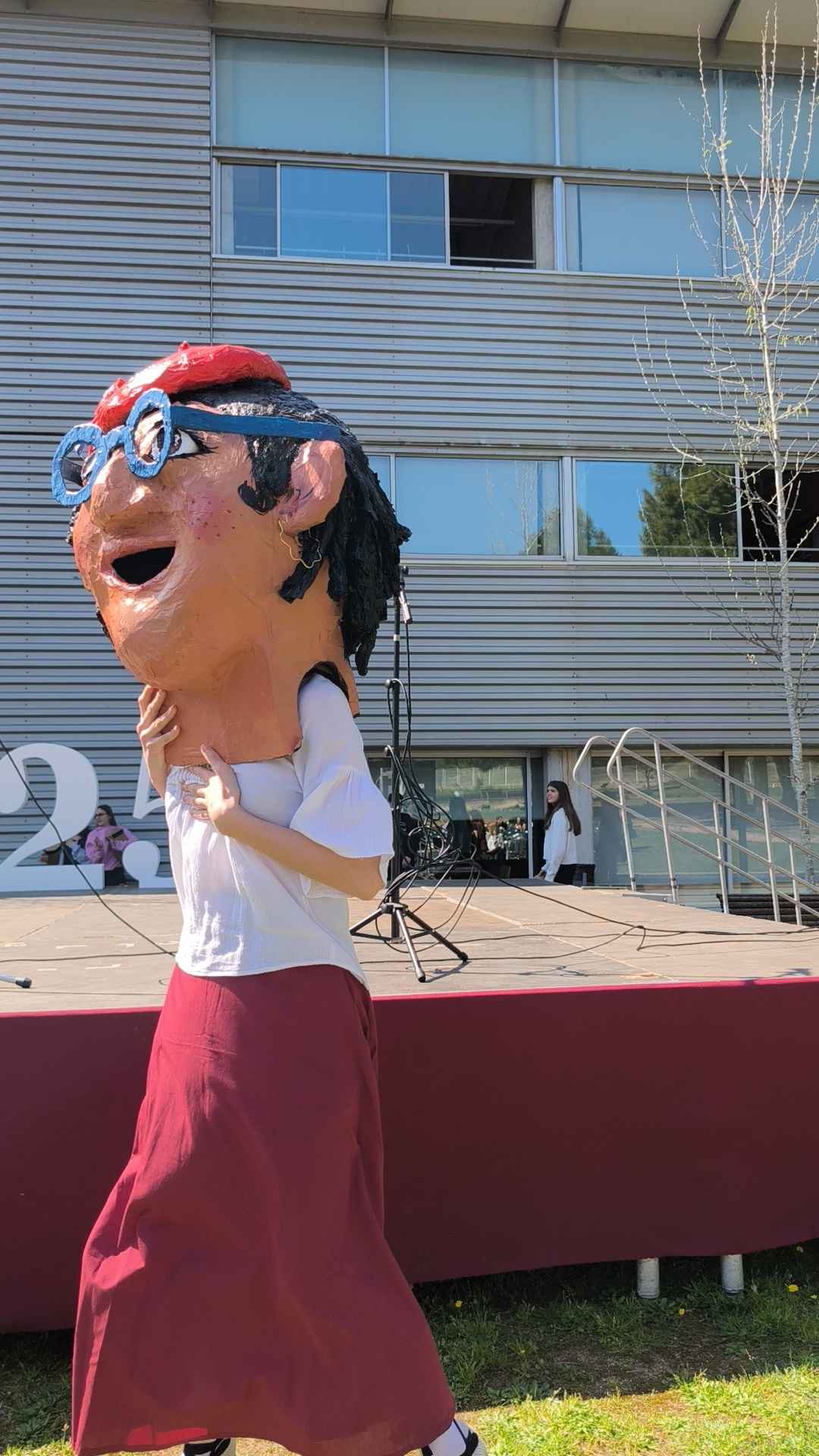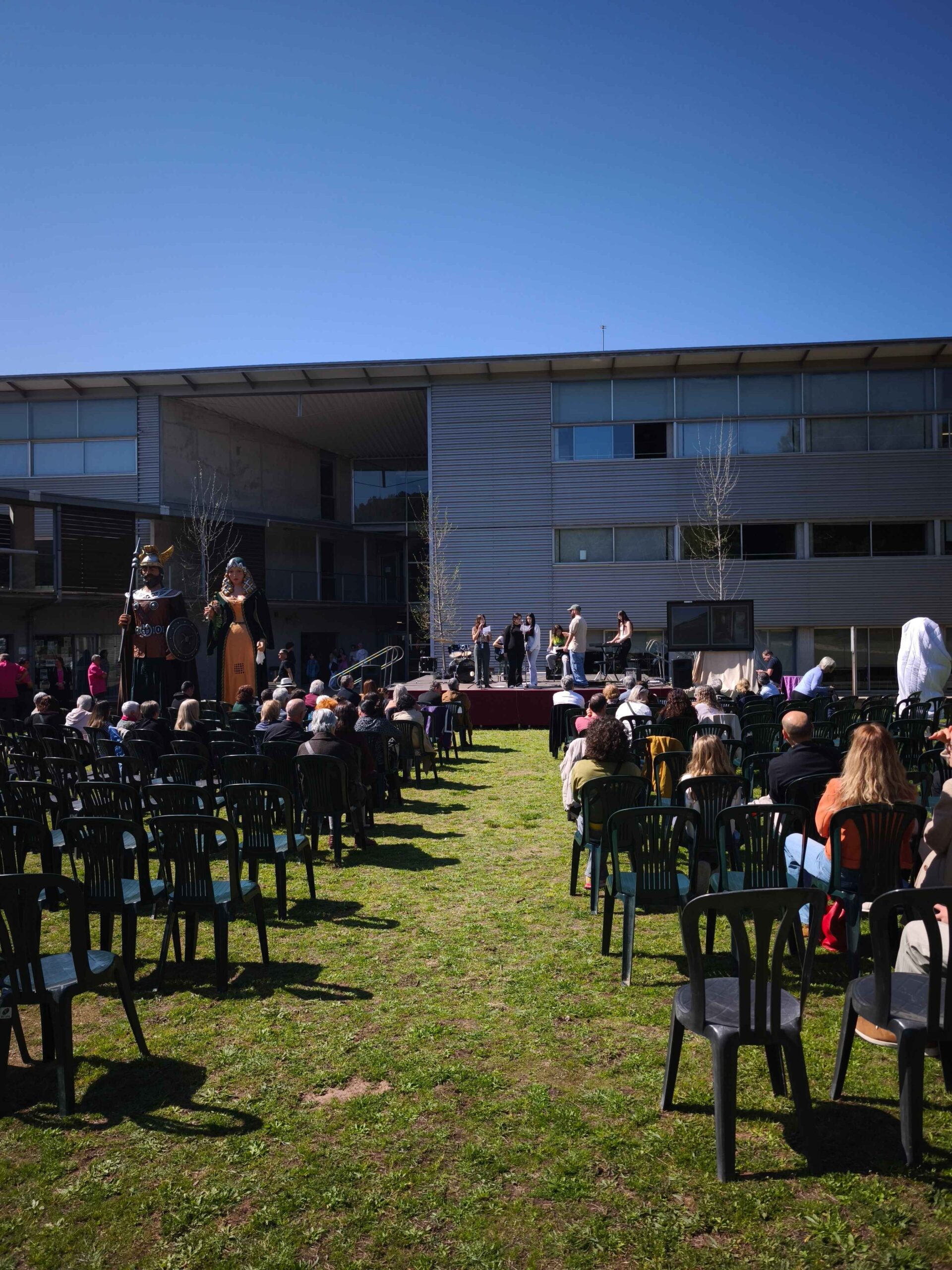 L’acte va continuar amb un espectacle a càrrec de l’associació Som Riu d’Or, que va aportar un ambient festiu amb un ball d’homenatge, un ball de bastons tradicional i diverses actuacions artístiques. També hi va participar la colla gegantera amb gegants i nans, i es van presentar el gegantó Gerbert d’Aurillac i el nan Batxibac, creats a les classes d’EVP amb la professora Emma Sató.