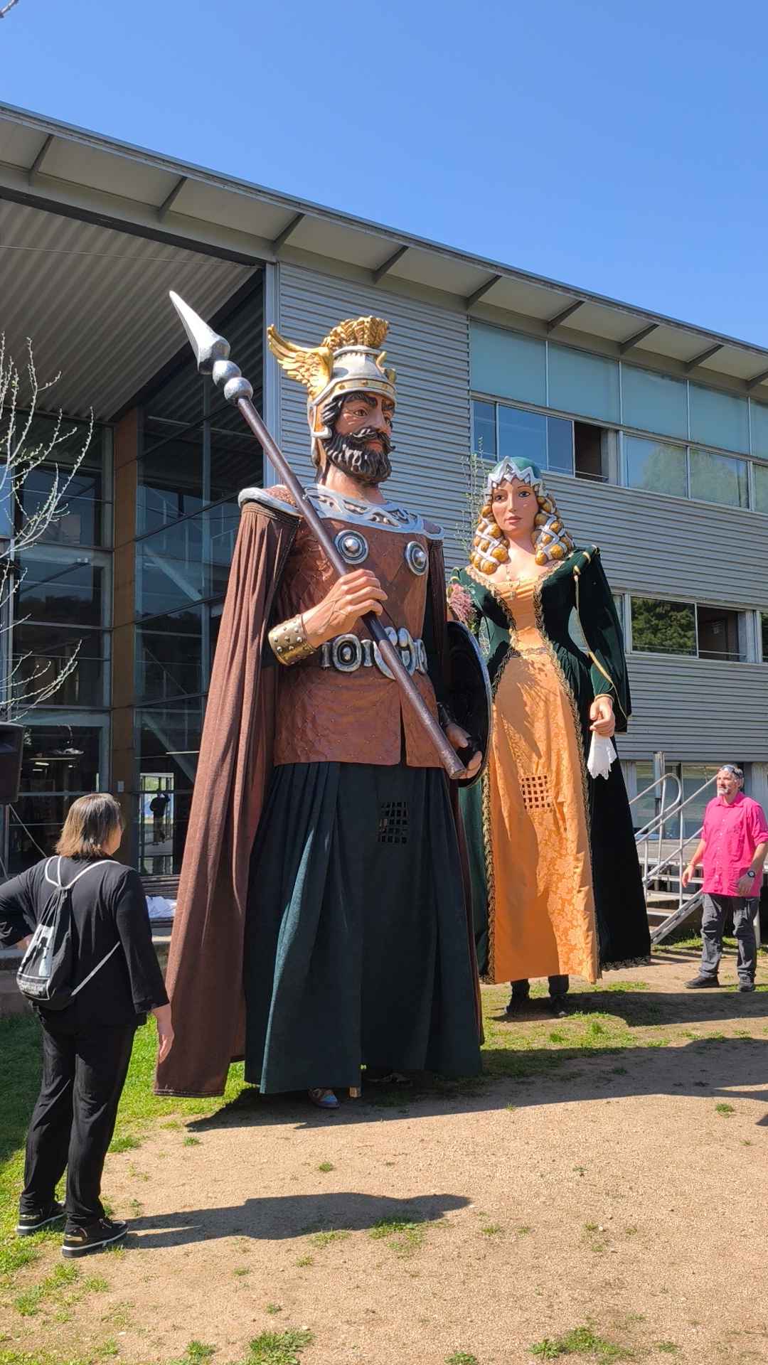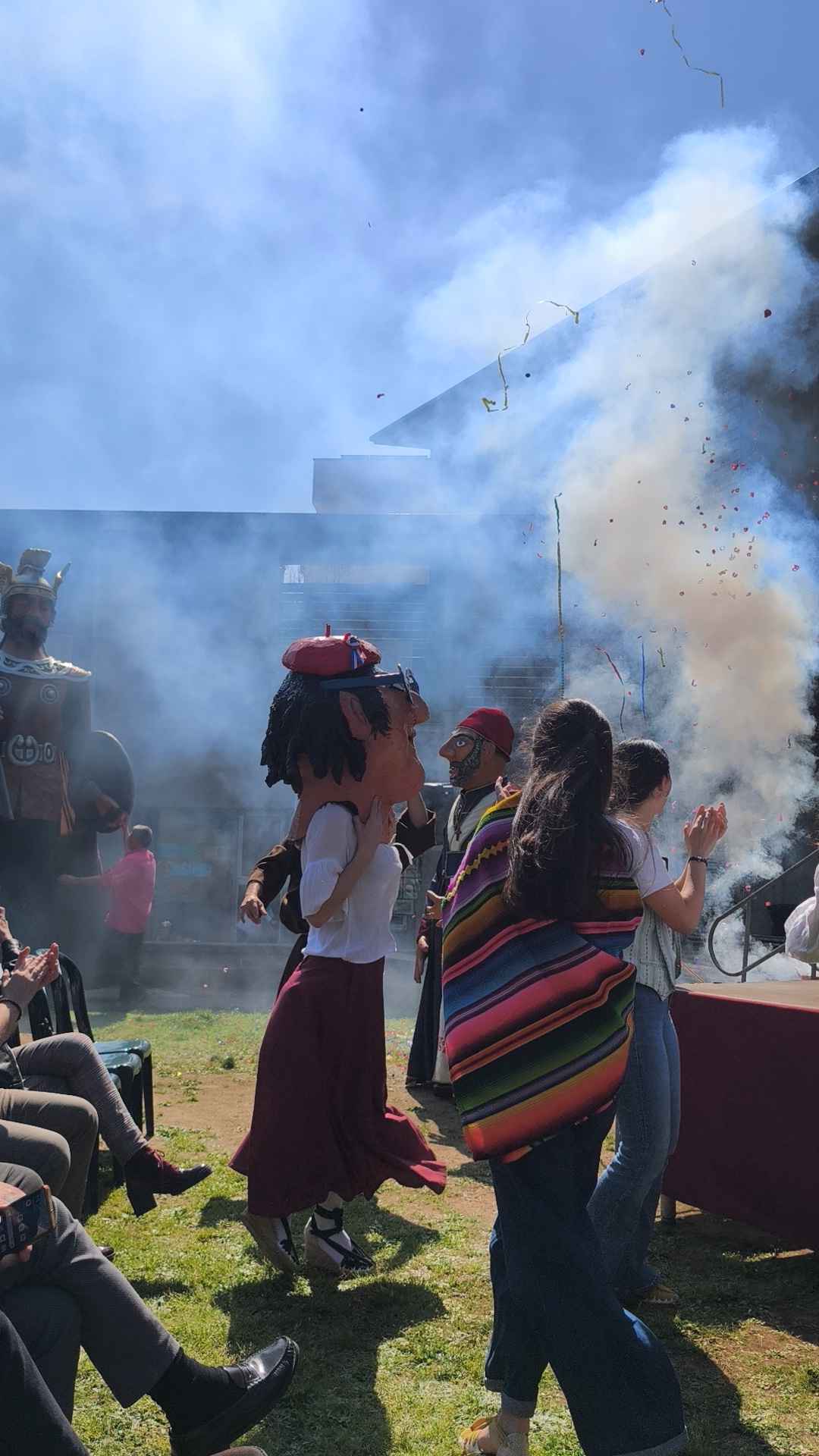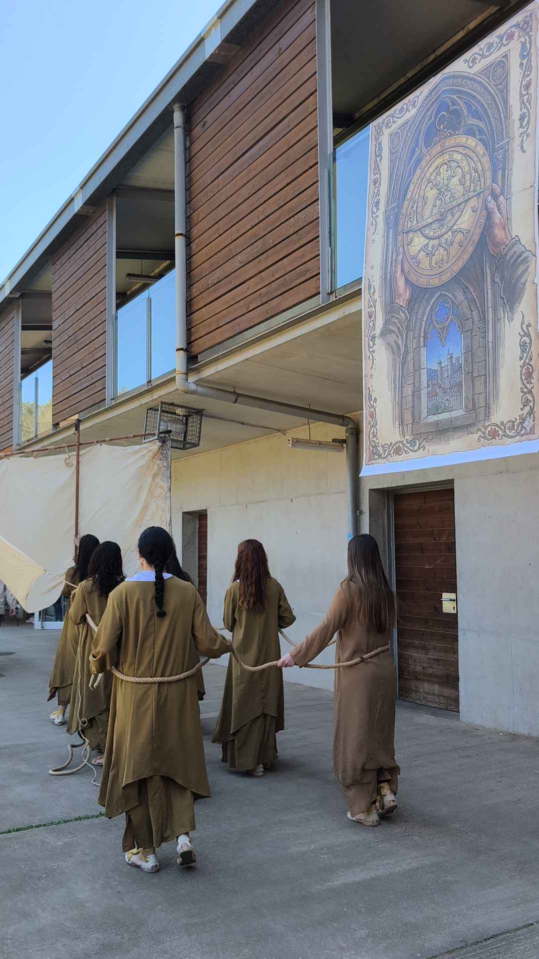 L’acte va continuar amb un espectacle a càrrec de l’associació Som Riu d’Or, que va aportar un ambient festiu amb un ball d’homenatge, un ball de bastons tradicional i diverses actuacions artístiques. També hi va participar la colla gegantera amb gegants i nans, i es van presentar el gegantó Gerbert d’Aurillac i el nan Batxibac, creats a les classes d’EVP amb la professora Emma Sató.