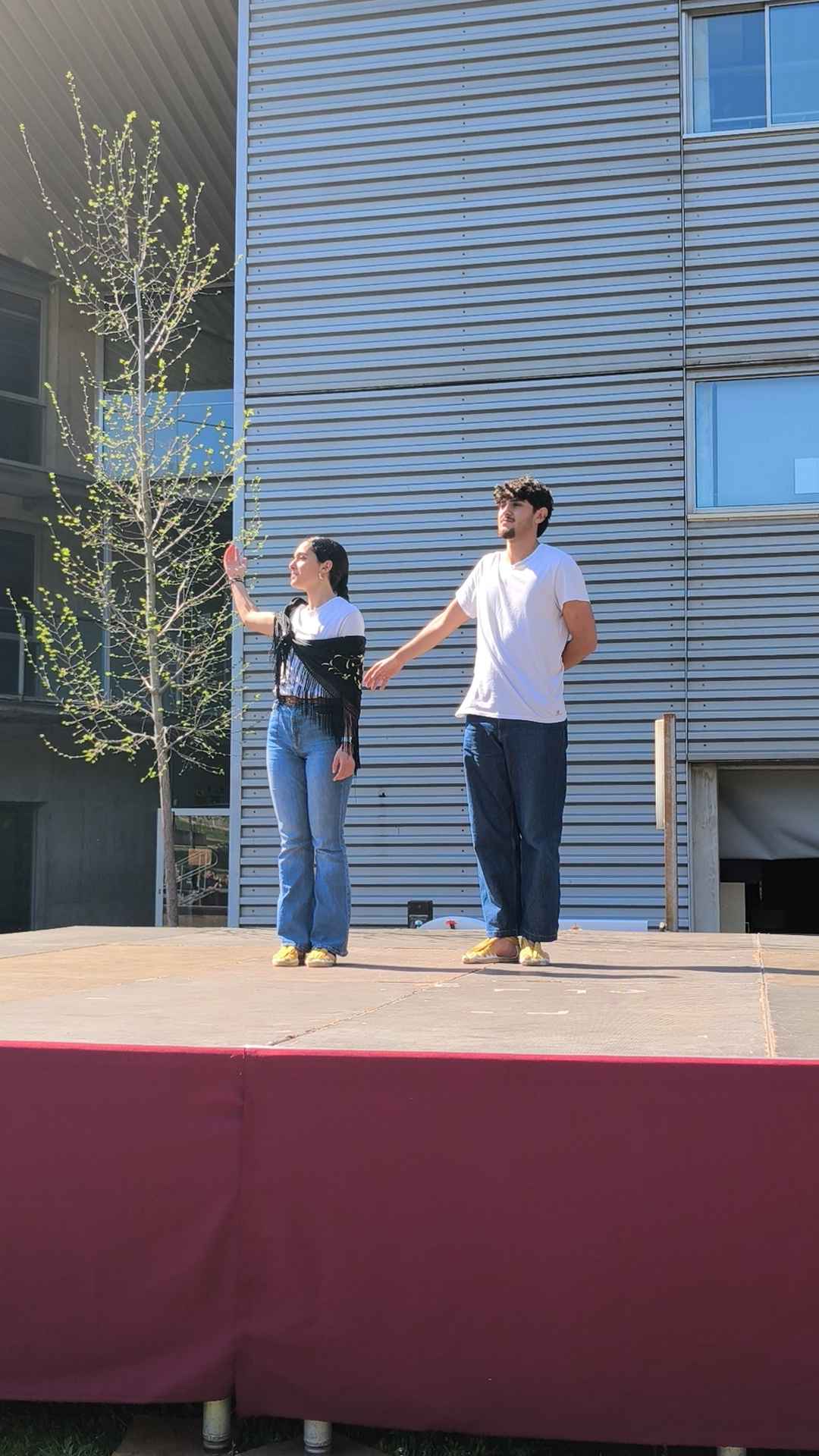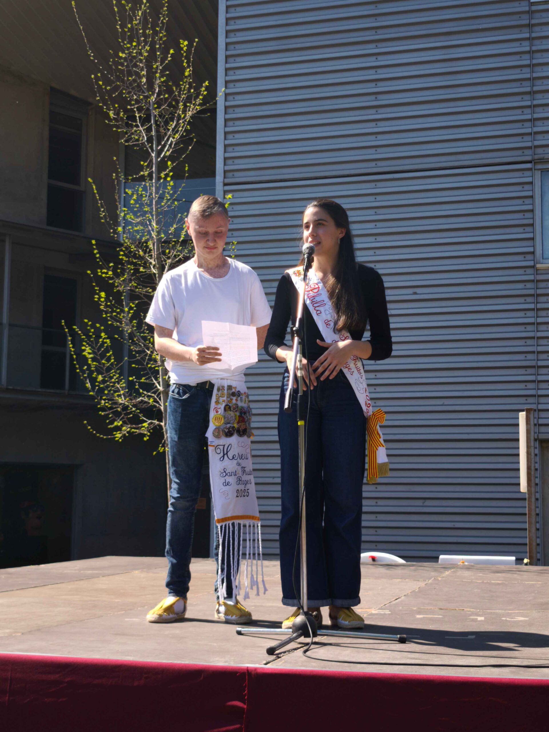 La pubilla i l’hereu de Sant Fruitós de Bages, Aina Rosas i Aniol Torreblanca, antics alumnes del centre, també van pujar a l’escenari per recordar la seva etapa com a estudiants i adreçar unes paraules a la comunitat educativa.