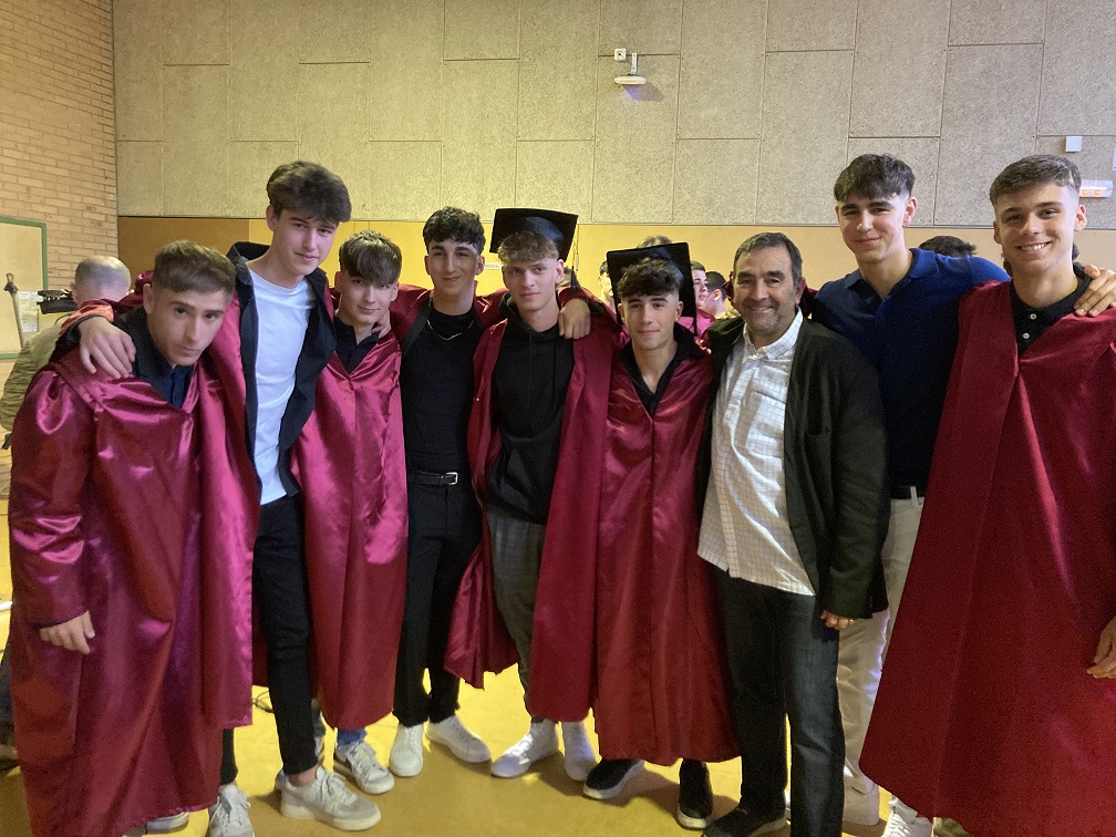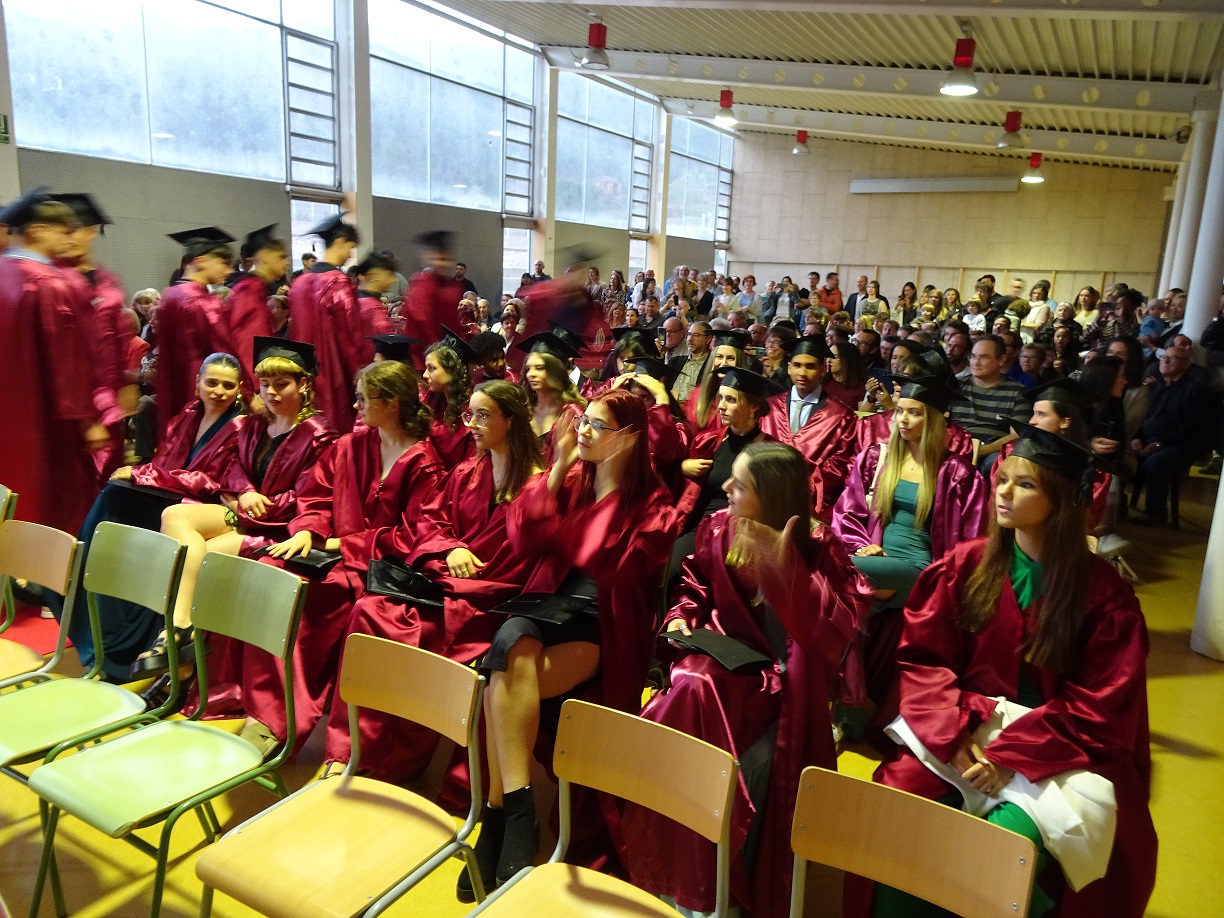 Després d’una llarga trajectòria professional, els dos professors que es jubilen aquest curs, en concret en Lluís Virós i la Rosa Boix, també van voler dedicar unes paraules tant a l’alumnat com cap a les seves famílies en aquesta jornada tan especial. El punt final de la cerimònia el va posar el tradicional llançament del birret. I, ja per acabar, els representants de l’AFA, fidels a l’esdeveniment, ens van donar pas a un petit aperitiu de celebració, moment en què l’alumnat va aprofitar també per fer-se unes fotos de record.