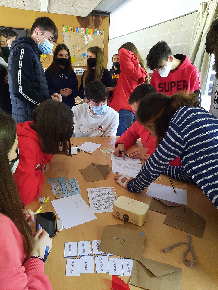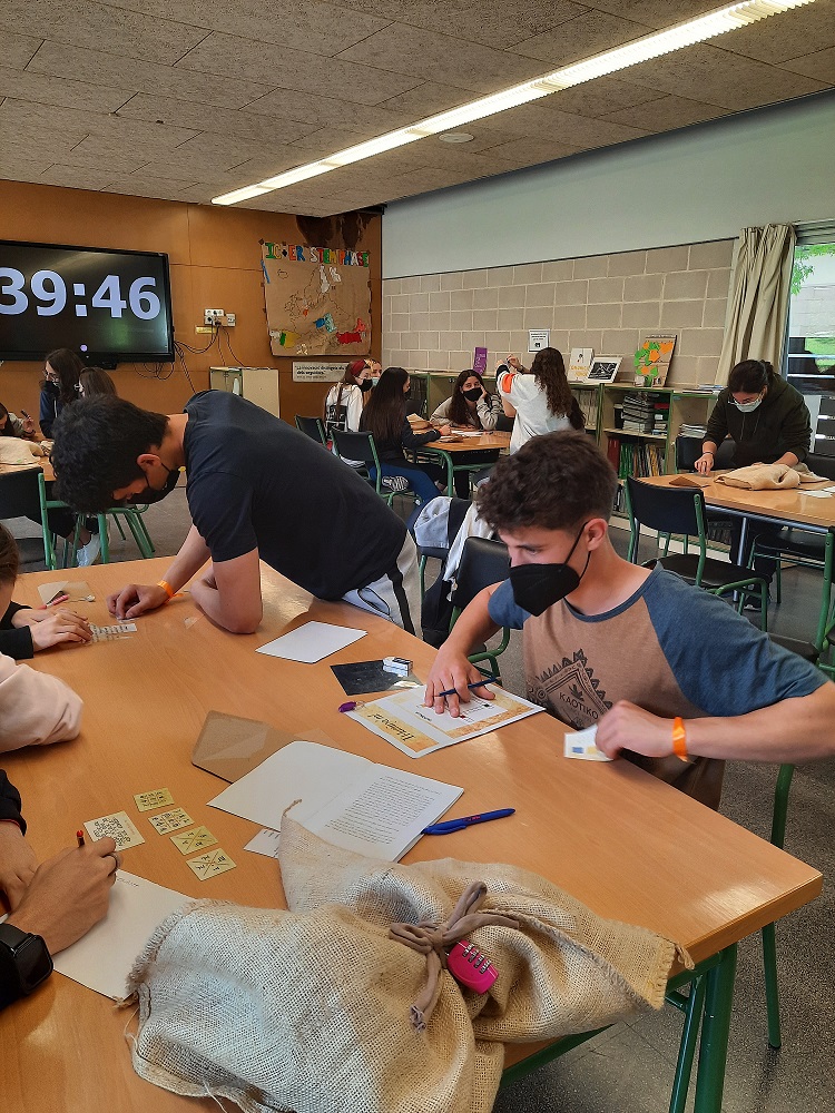 Ahir els alumnes de 1r de batxillerat van participar en un escape room sobre Tirant lo Blanc. Érem al 1490, el Gran Turc ens tenia capturats i separats en 5 cel.les de les quals havíem d’intentar escapar en màxim de 45 minuts. En cada cel·la vam haver de resoldre enigmes, proves i preguntes que hi havia dins d’un sac que suposadament havíem trobat en un forat de la cel·la. Vam haver de treballar en equip per resoldre les proves que ens van permetre sortir de la cel·la i ajudar els altres presoners. Perquè només podíem obrir el cadenat de la presó sí aconseguíem que totes les cel.les s’alliberessin. No teníem gaire temps: El compte enrere era implacable!!! Però ens havíem llegit el llibre, estàvem preparats per al repte. I HO VAM ACONSEGUIR!