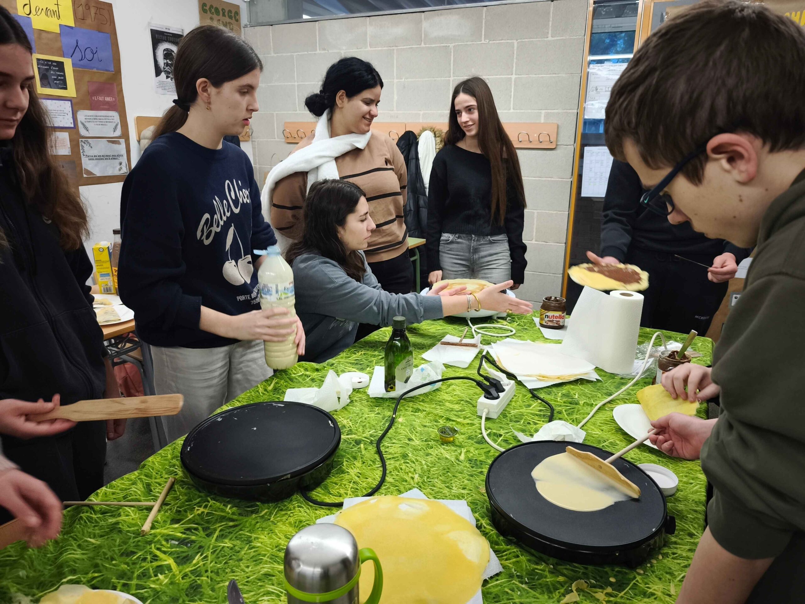 L’alumnat de 4t d’ESO de l’optativa de francès ha celebrat aquests dies la Chandeleur, una festa tradicional francesa, amb una activitat tan cultural com deliciosa: l’elaboració i degustació de crêpes amb Nutella per esmorzar.
