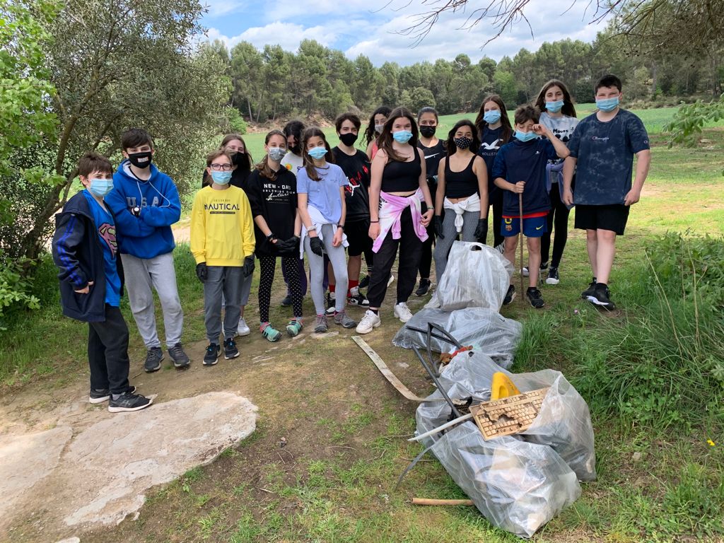 Aquests dies l’alumnat d’ESO estan realitzant la neteja de l’entorn de l’institut. Es divideixen en grups de neteja i separen els residus recollits per fraccions (vidre, envasos i rebuig). Un parell d’alumnes dels grups són els encarregats d’anar pesant i apuntant les quantitats de residus recollits de cada fracció i emplenaran la fitxa de balanç de l’operació de neteja. Disposen de dues bàscules manuals de fàcil ús. També disposen de sacs, guants i pinces de recollida de residus, a banda dels contenidors per poder fer la separació per fraccions. Un cop finalitzada la neteja, l’empresa de recollida passa a portar els residus a la deixalleria.
