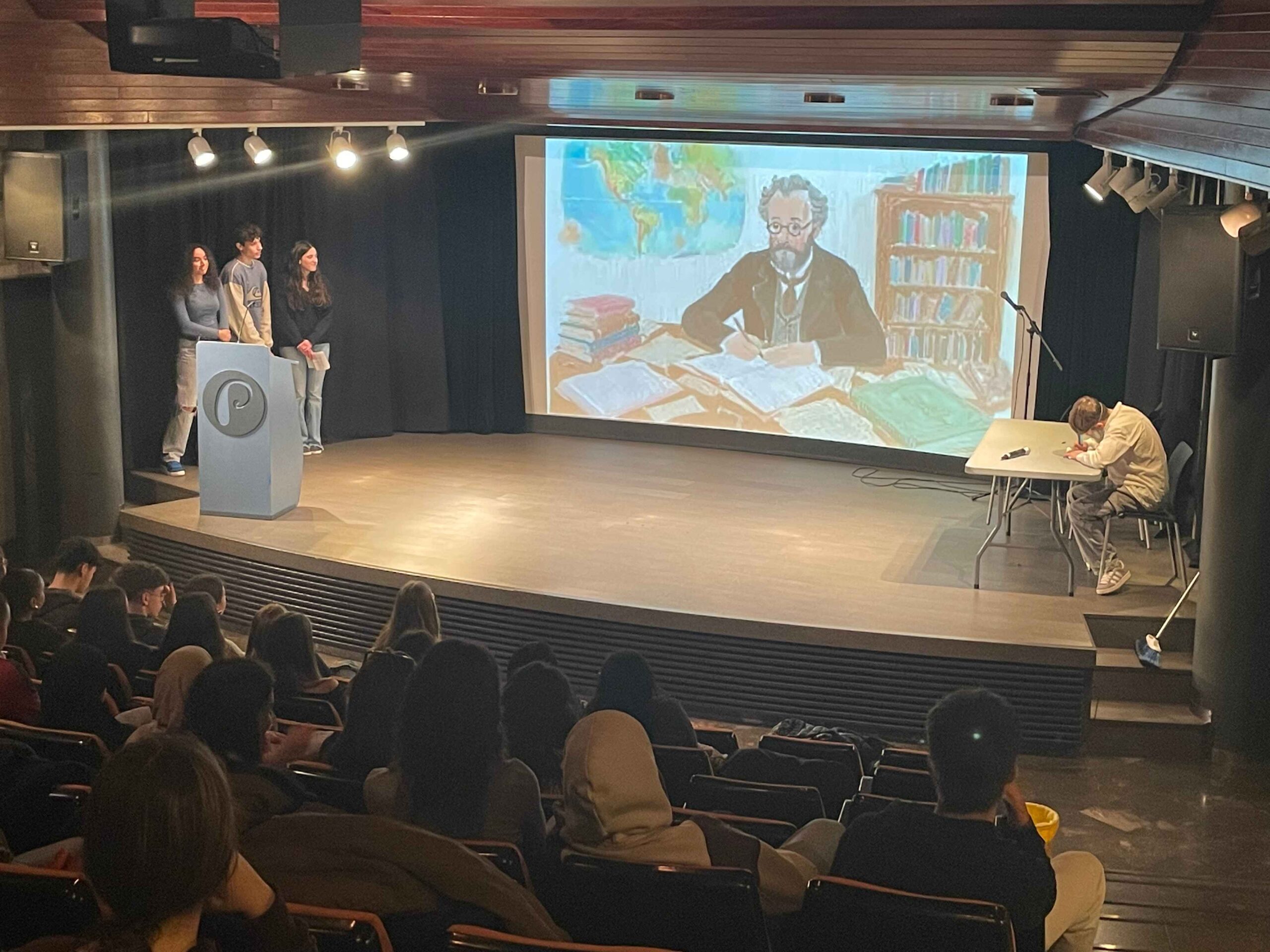 Els músics de 1r de Batxibac del nostre institut van homenatjar l’Édith Piaf en el 110è aniversari del seu naixement interpretant tres peces emblemàtiques (“La vie en rose”, “Padam” i “Non, je ne regrette rien”). També van presentar Jules Verne, autor que van treballar i descobrir gràcies a la Sortida a l’deal Barcelona del passat mes de gener.