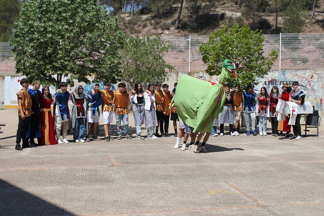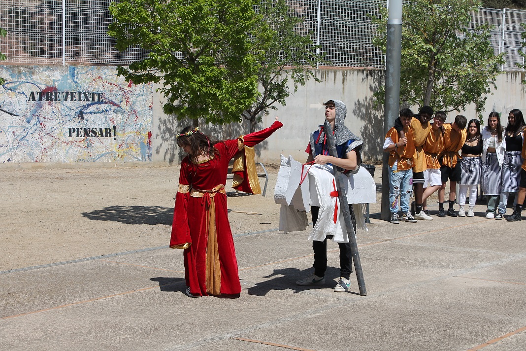 Durant l’acte de cloenda, la Fatima Kabouri de 3r d’ESO C va ballar una coreografia que va preparar de la cançó TQG. I al final de la jornada, l’alumnat de teatre de 4t d’ESO ens va fer gaudir d’una peça escènica inspirada en la llegenda de Sant Jordi. Podeu veure un recull de fotografies a continuació.