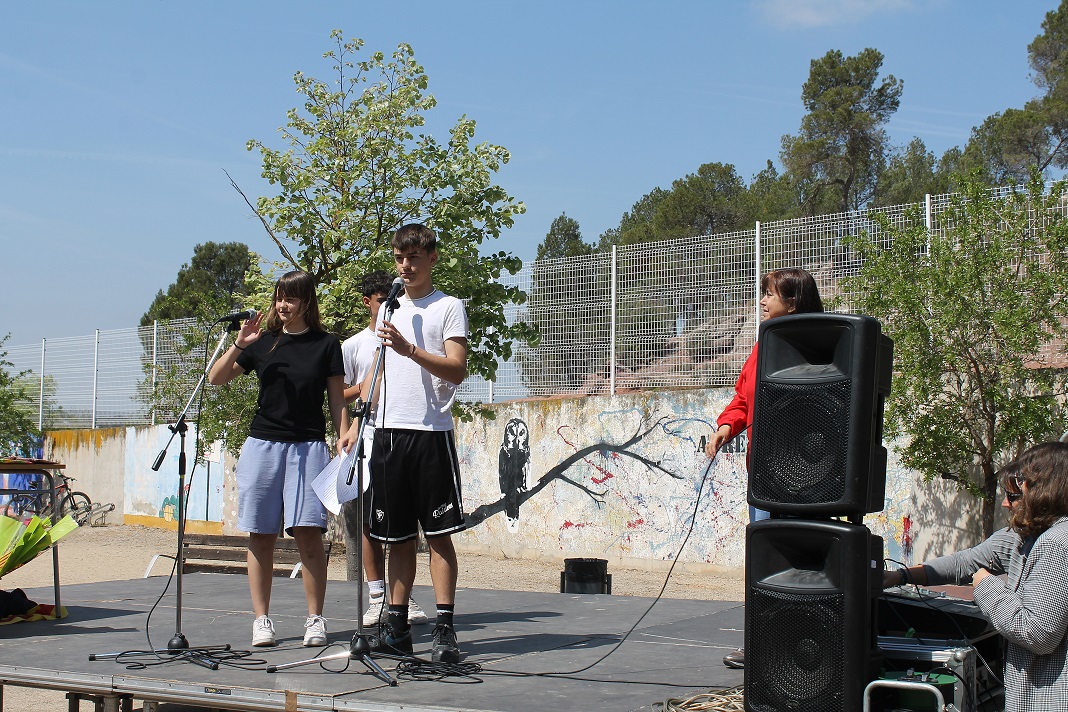 El passat divendres 21 d’abril vam celebrar al centre la jornada de Sant Jordi. Durant el matí, després de seguir l’horari habitual de classes les dues primeres hores, a l’ESO es van fer activitats emmarcades en la celebració d’aquesta diada. A 1r d’ESO es va fer un breakout digital, a 2n d’ESO un taller de punts de llibre, a 3r d’ESO es van idear jocs de rol i a 4t d’ESO, cançons. Totes les activitats estaven inspirades en Sant Jordi. A l’hora del pati, una representació d’alumnes de 3r d’ESO van vendre coca i xocolata per recollir diners pel seu viatge de final de curs de l’any vinent. Per altra banda, el professorat va portar a terme un amic invisible d’intercanvi de llibres. A més, durant la setmana es va realitzar també un concurs de poemes visuals. Els guanyadors d’aquest concurs van ser, per ordre de dilluns a divendres, el Santi Rodríguez de 3r d’ESO C, el Handbal Ahmed de 4t d’ESO C, l’Isidre Bover de 1r d’ESO A, la Laila Bouhnouf de 2n d’ESO B i el Cyril Priego de 3r d’ESO A.