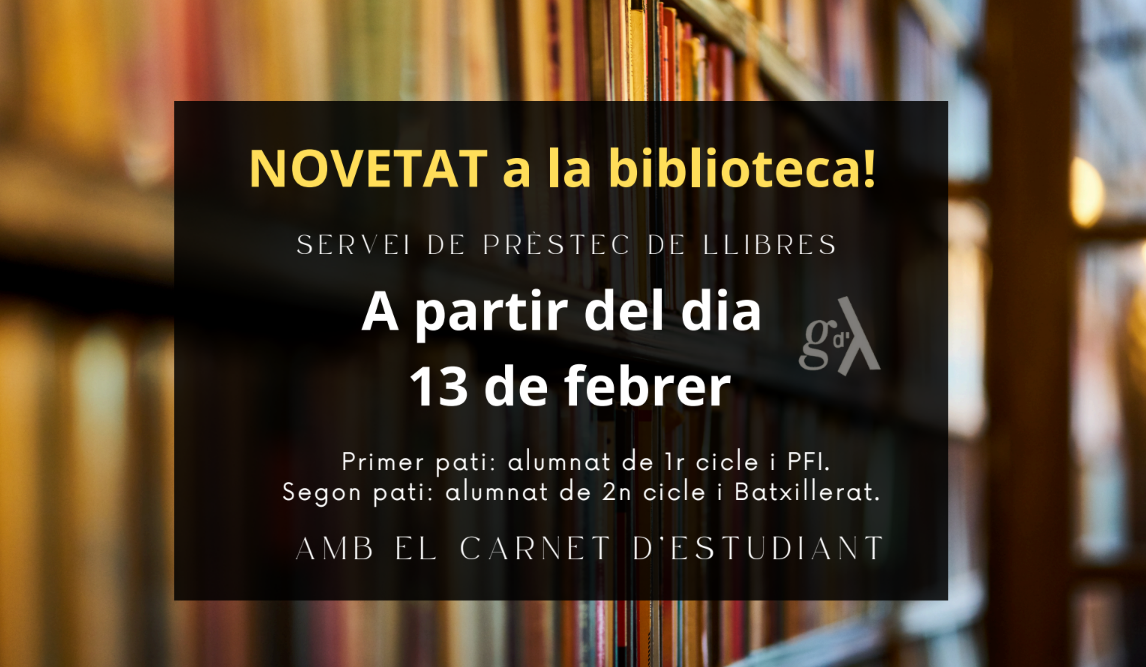 A partir del pròxim 13 de febrer, la col·lecció de llibres de la biblioteca torna a estar al teu abast. T’animem a visitar-la i deixar-te enamorar per una nova lectura. Vine, remena entre les prestatgeries i emporta’t els teus llibres preferits a casa!