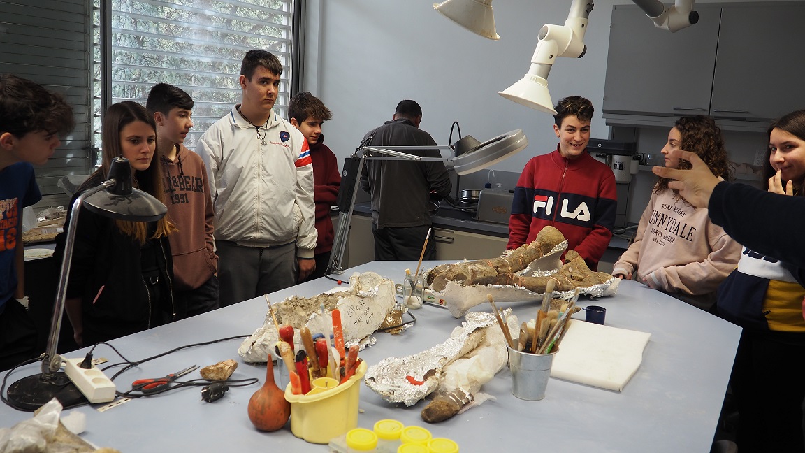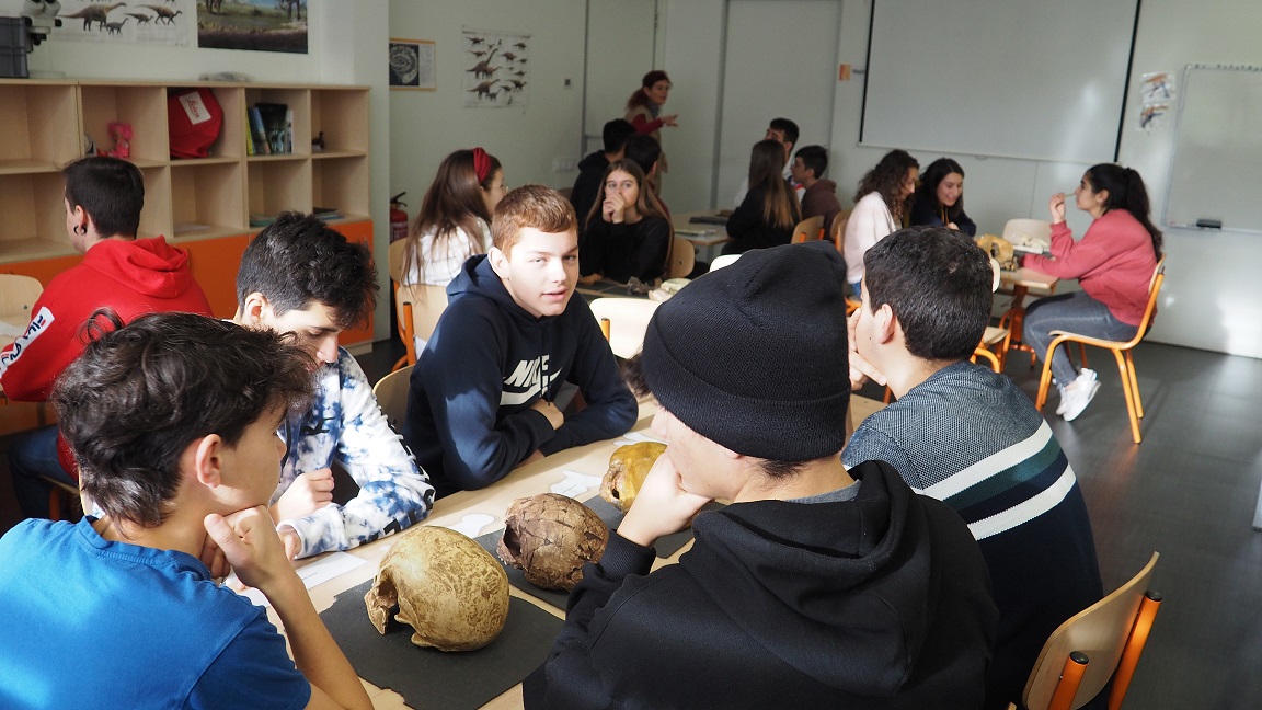 A més de realitzar un taller sobre l’evolució dels animals vertebrats, els i les alumnes van poder fer una visita guiada per descobrir les exposicions permanents i temporals del museu. Finalment, van poder accedir a zones del museu que habitualment no estan obertes al públic com les instal·lacions on hi arxiven els exemplars de fòssils i el laboratori on es netegen i preparen per a la seva identificació i conservació.
