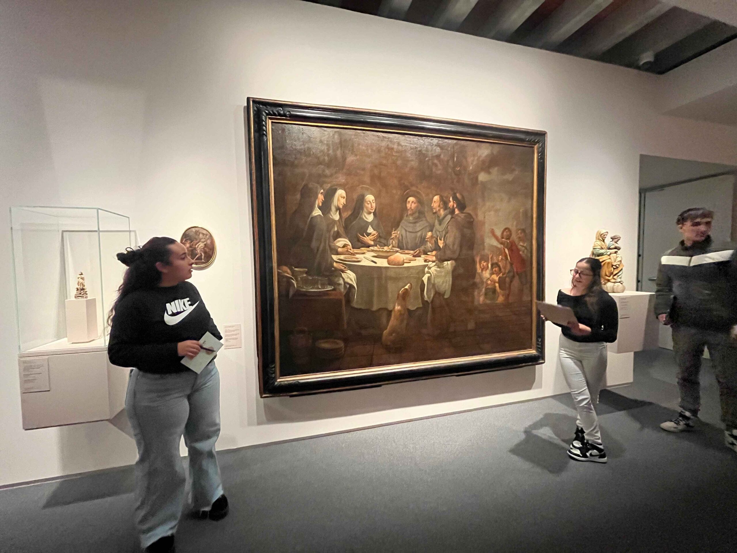 La visita va incloure una activitat participativa on els alumnes van tenir l’oportunitat d’interactuar de manera directa amb les obres exposades. Dividits en petits grups, l’alumnat va identificar diverses peces clau del museu i va elaborar comentaris sobre les tècniques emprades pels artistes de l’època, com la utilització de la llum i l’ombra (clarobscur), el realisme en les figures humanes i la complexitat compositiva.