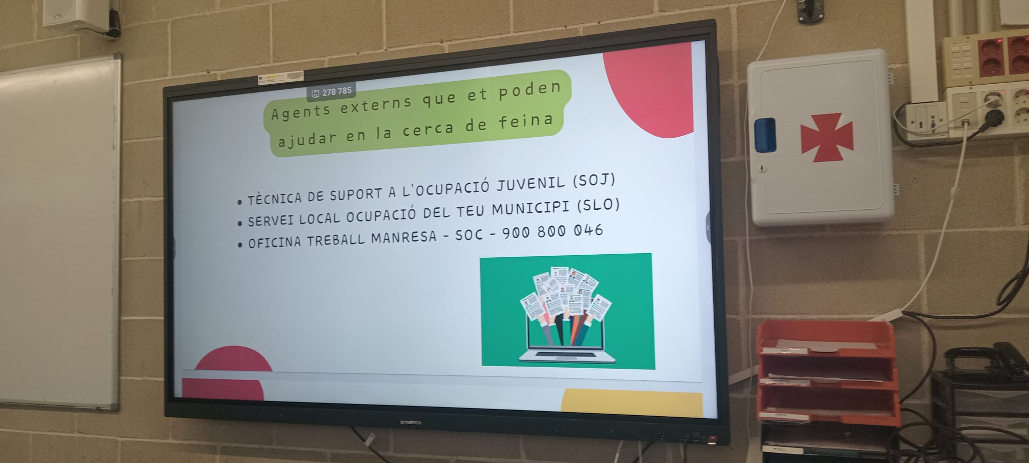 En aquesta sessió ens va explicar els diferents portals d’ocupació (InfoJobs, Xaloc, Divendres.com) i els serveis d’ocupació disponibles: el Servei Català d’Ocupació (SOC) i el Servei Local d’Ocupació (SLO).