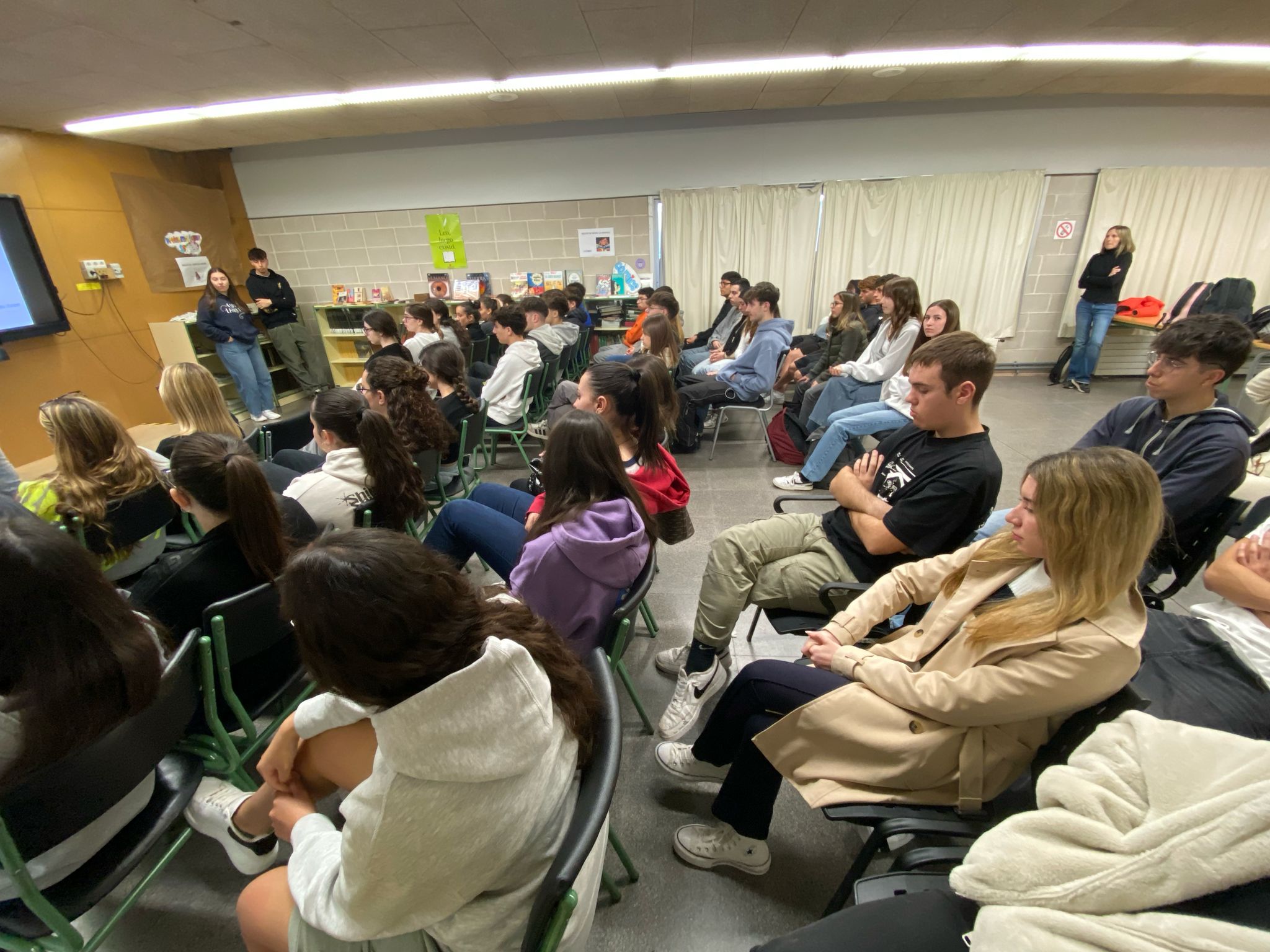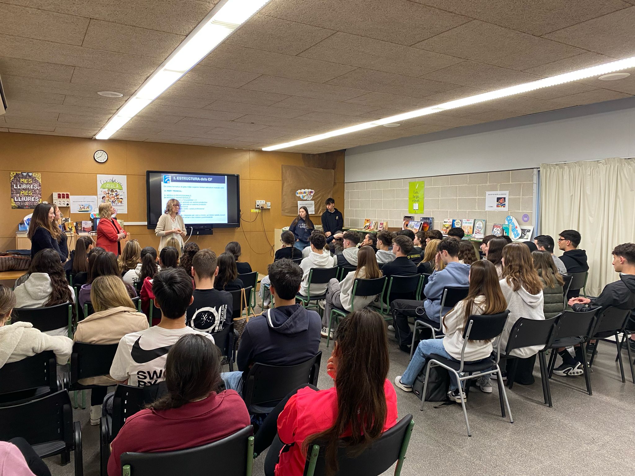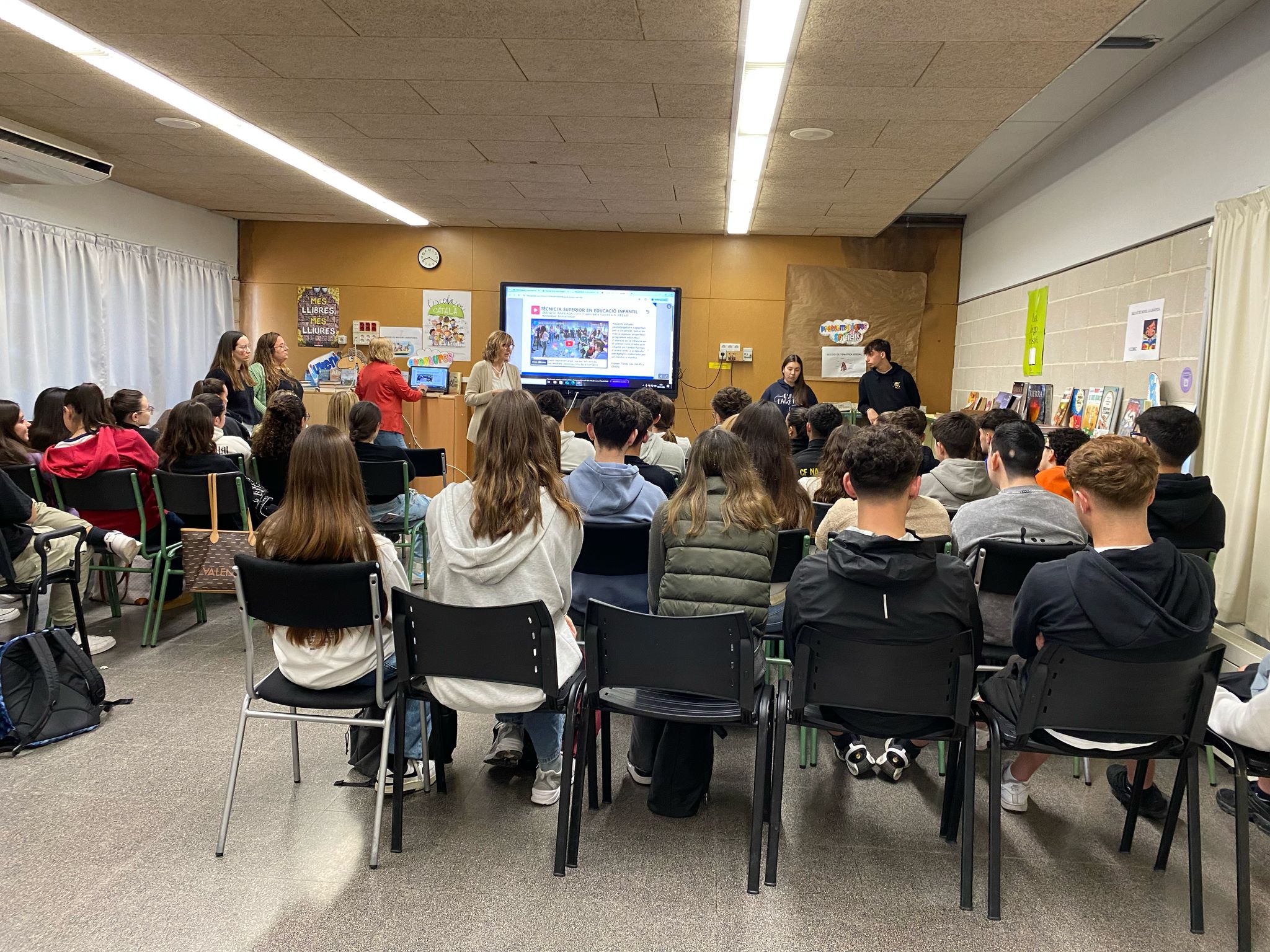 Avui el nostre alumnat de Batxillerat ha assistit a una xerrada de CFGS per part del centre de secundària Guillem Catà que molt amablement s’han ofert a fer-nos cinc cèntims dels cicles que ofereixen, com el més nou de Mediació Comunicativa o el de Caracterització i Maquillatge Professional. També han explicat els requisits generals i les possibles sortides acadèmiques.