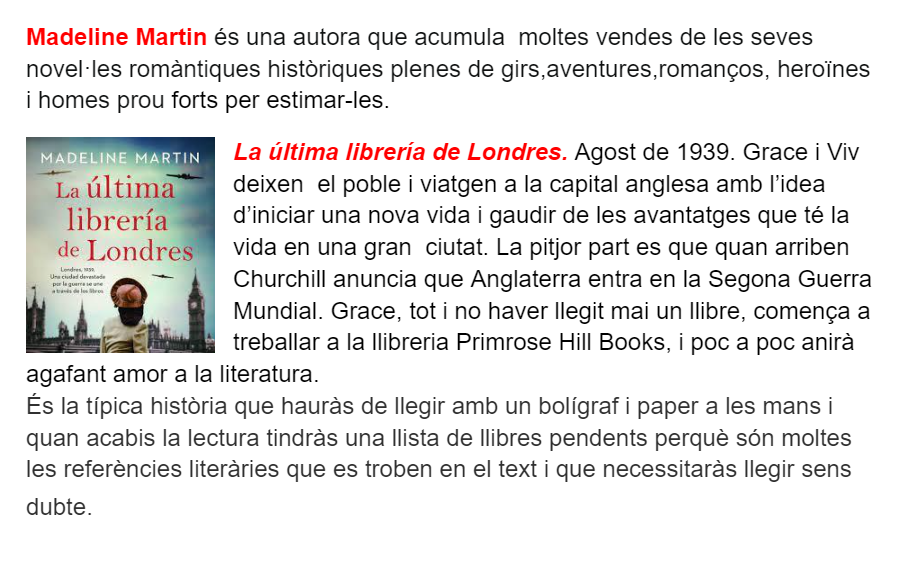 La biblioteca us recomana lectures pel gener. Els següents llibres  segur que us agradaran.