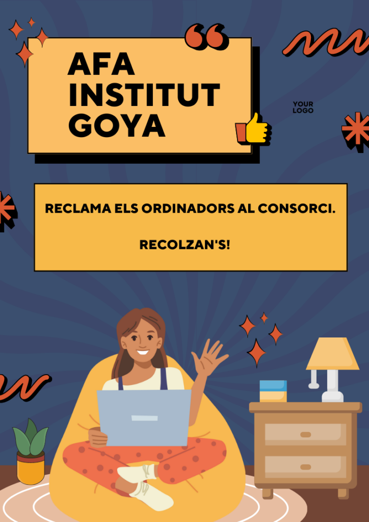 L’Institut Goya està dins del Pla d’educació digital de Catalunya, i això suposa que el Consorci hagi de dotar tot l’alumnat d’ordinadors, circumstància que no s’està portant a terme al nostre centre. Aquest fet afecta l’alumnat que actualment cursa 3r. i 4t de l’ESO, doncs l’Administració Pública porta molts anys de retard, però sobretot, volem lluitar perquè les noves famílies que s’incorporen a 1r. d’ESO no els hagin de comprar.