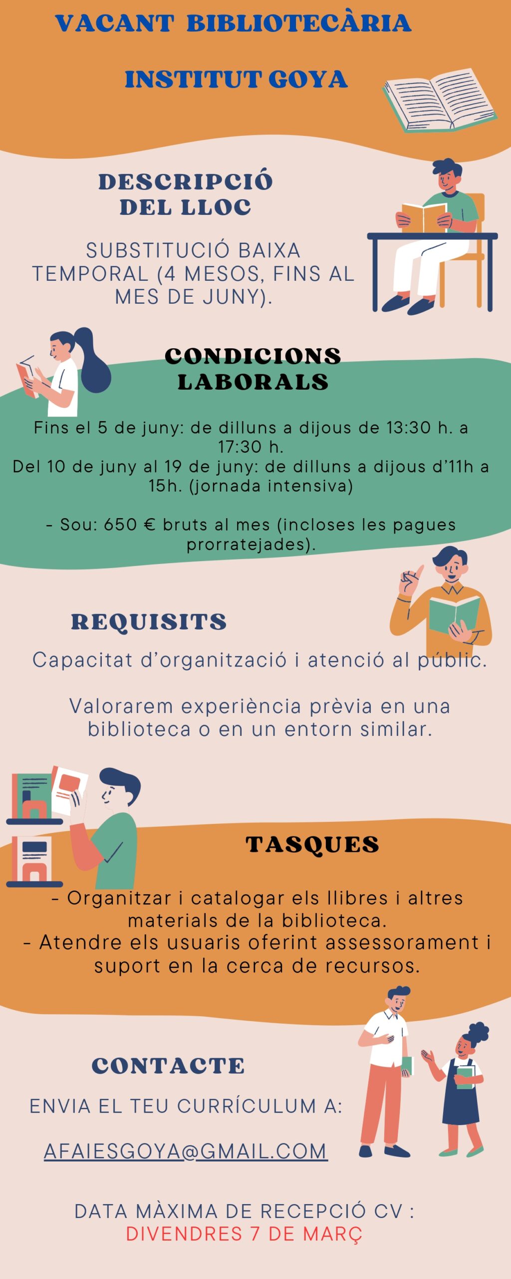 Publicat 04/03/2025 a 1024 &vegades; 2560 en Oferta de treball vacant Responsable de biblioteca.