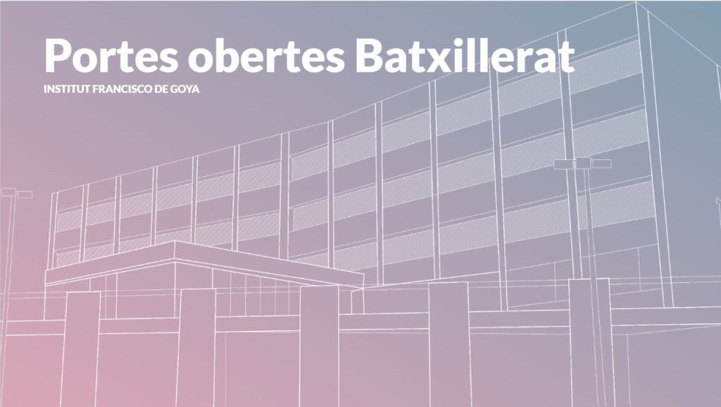 La jornada de PORTES OBERTES de BATXILLERAT es farà enguany dimarts, 24 de març a les 18:00 hores.