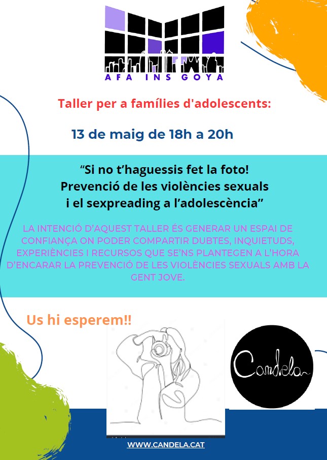 L’AFA us convida el dilluns 13 de maig al taller per a famílies d’adolescents anomenat:  “Si no t’haguessis fet la foto! Prevenció de les violències sexuals i el sexpreading a l’adolescència”, impartit per la Cooperativa Candela.