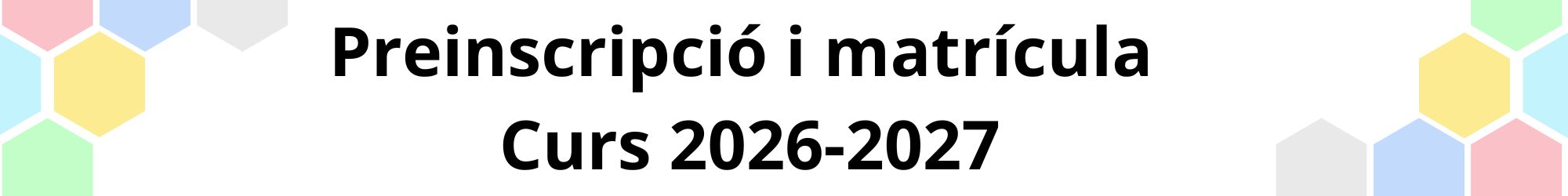| ESO Preinscripció finalitzada | BATXILLERAT: Preinscripció del 9 al 16 d’abril de 2026 BATXIBAC: Preinscripció del 20 al 27 de març de 2026 | CFGM Portes obertes dimecres 15 d’abril Cures Auxiliars d’infermeria a les 18h Atenció a persones en situació de dependència a les 19h |