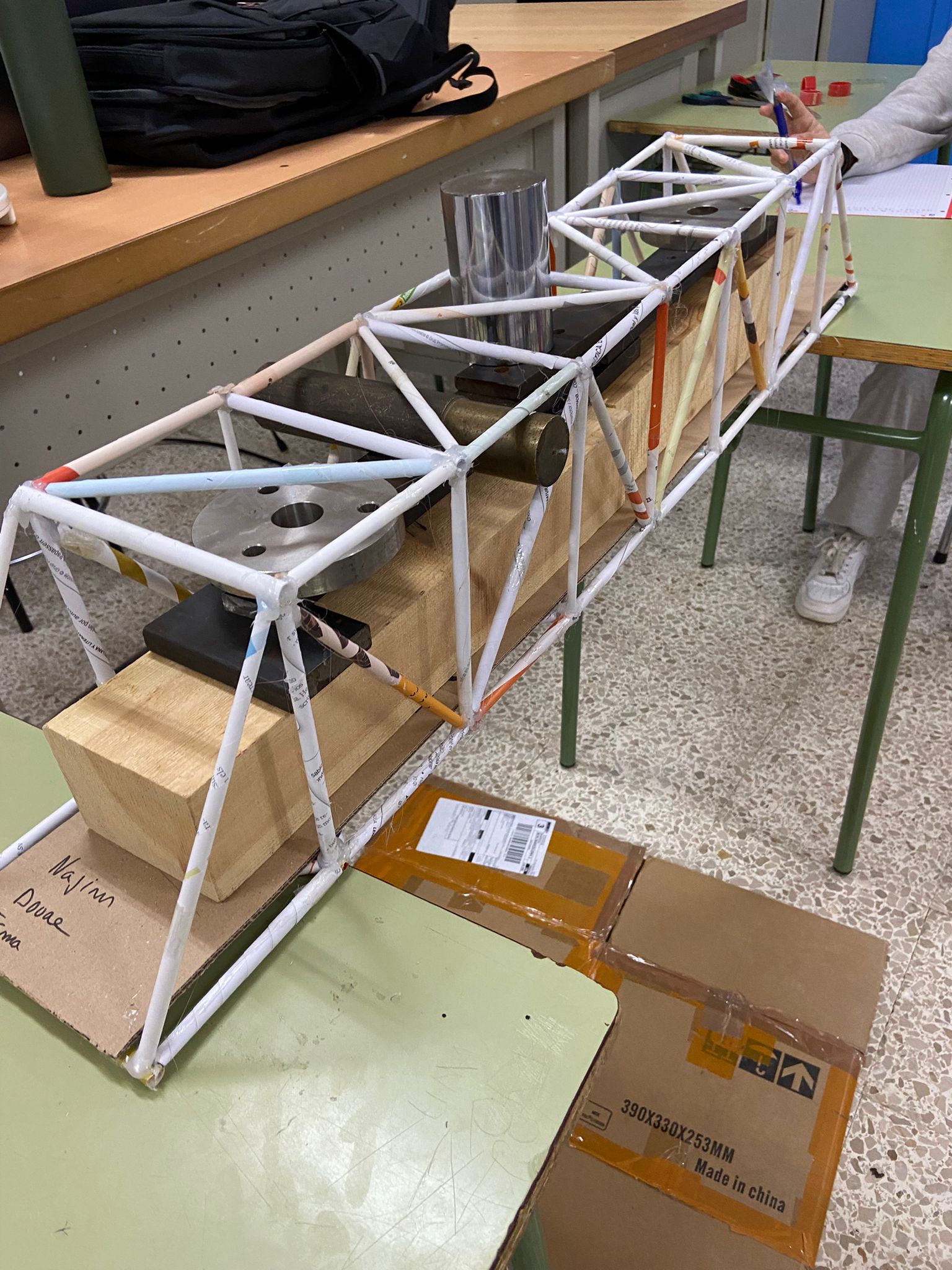 Un cop finalitzada la construcció, s’ha dut a terme una prova de resistència per analitzar els esforços estructurals i observar els punts de trencament.