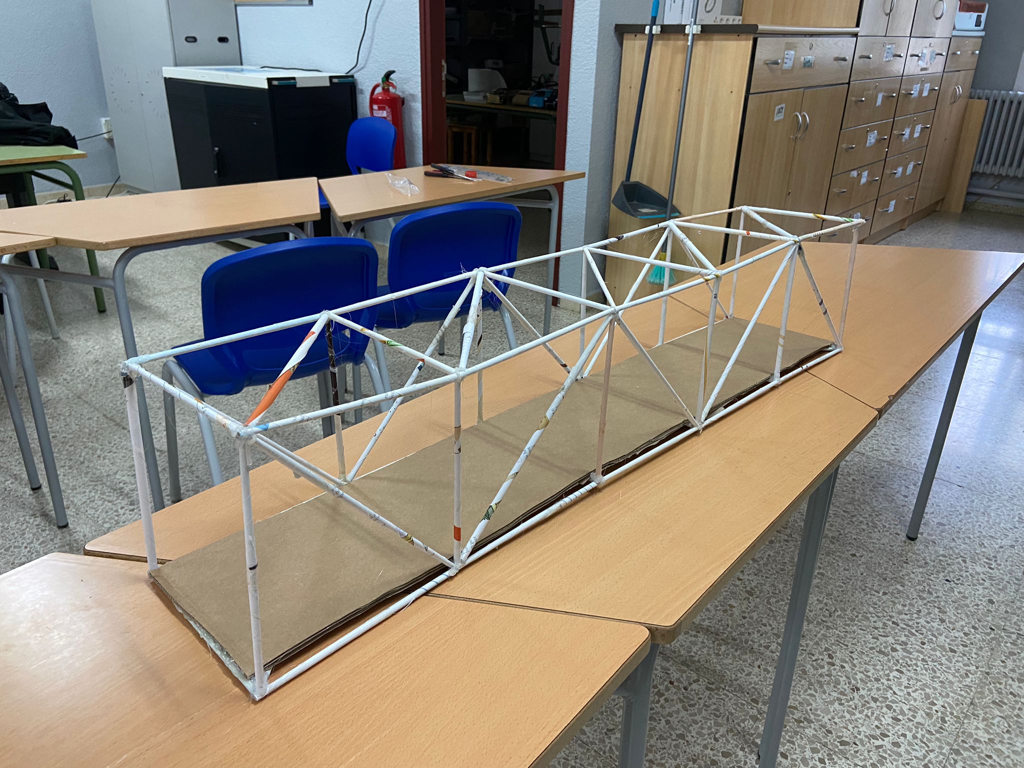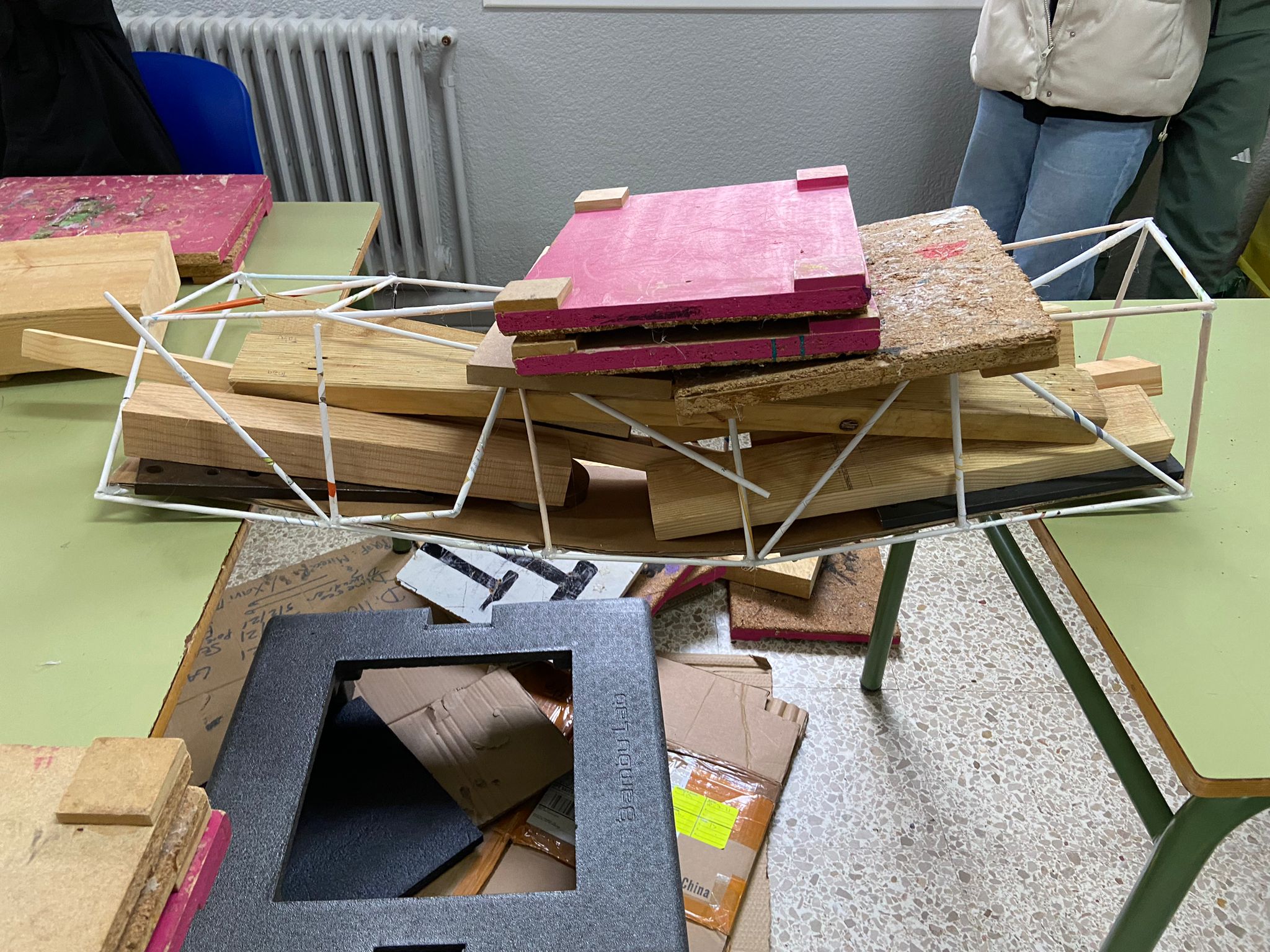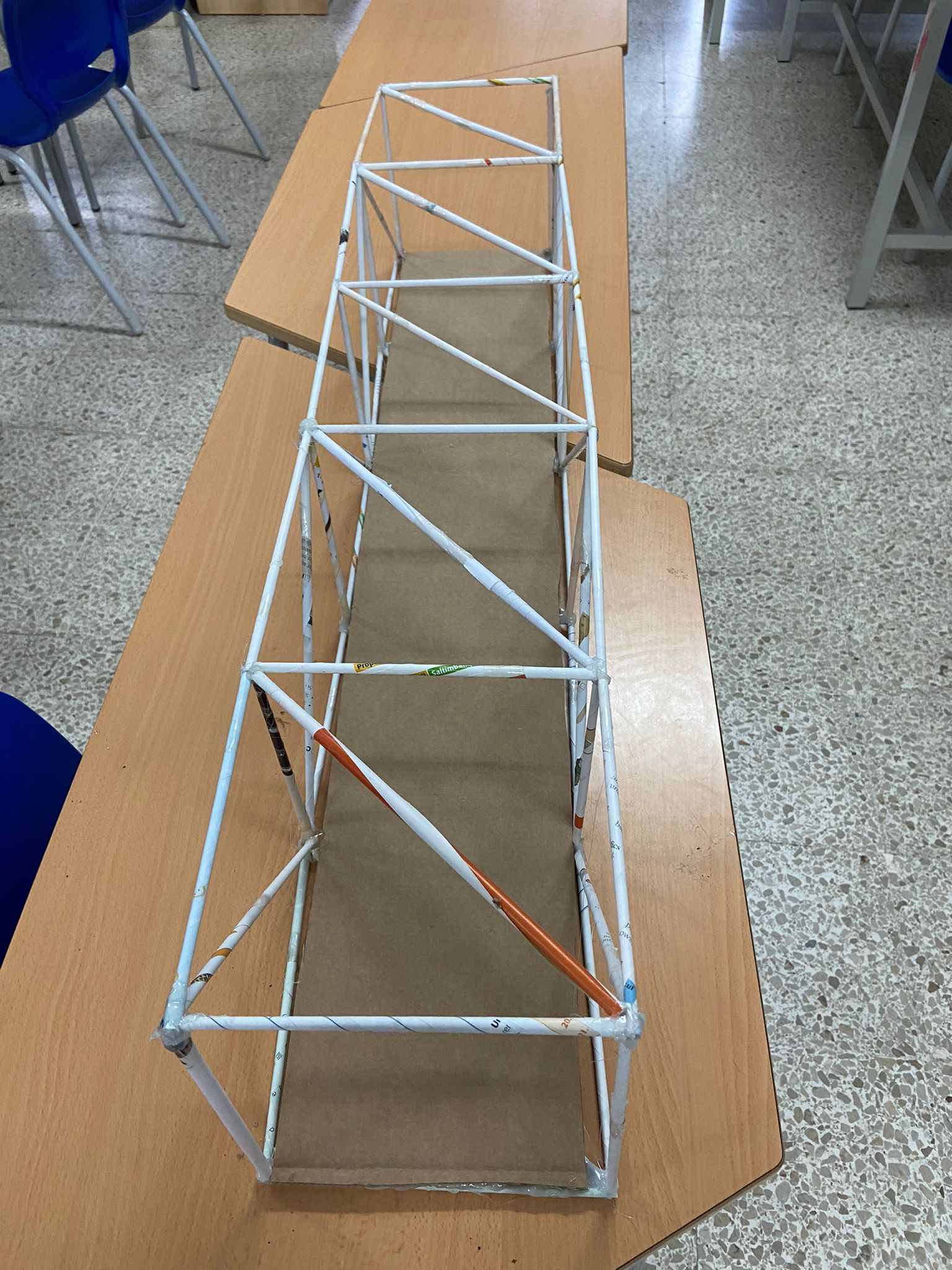L’activitat ha consistit en la construcció d’una maqueta d’un pont triangulat utilitzant papers reciclats, així com cinta adhesiva i silicona calenta com a elements d’unió.