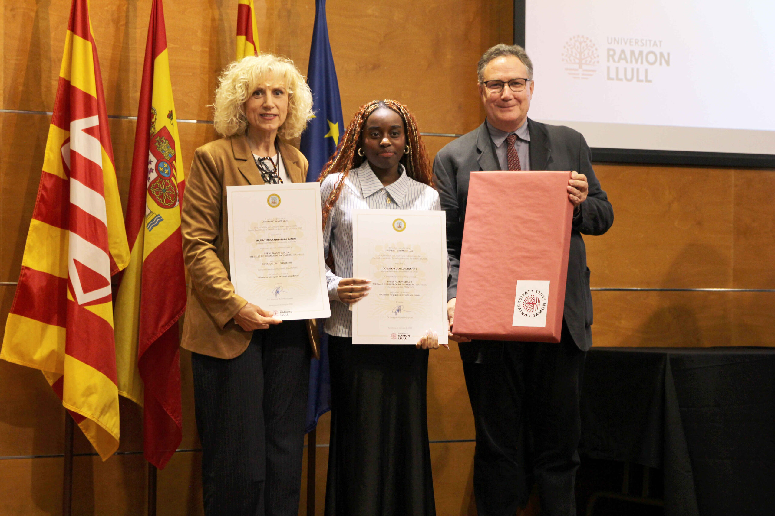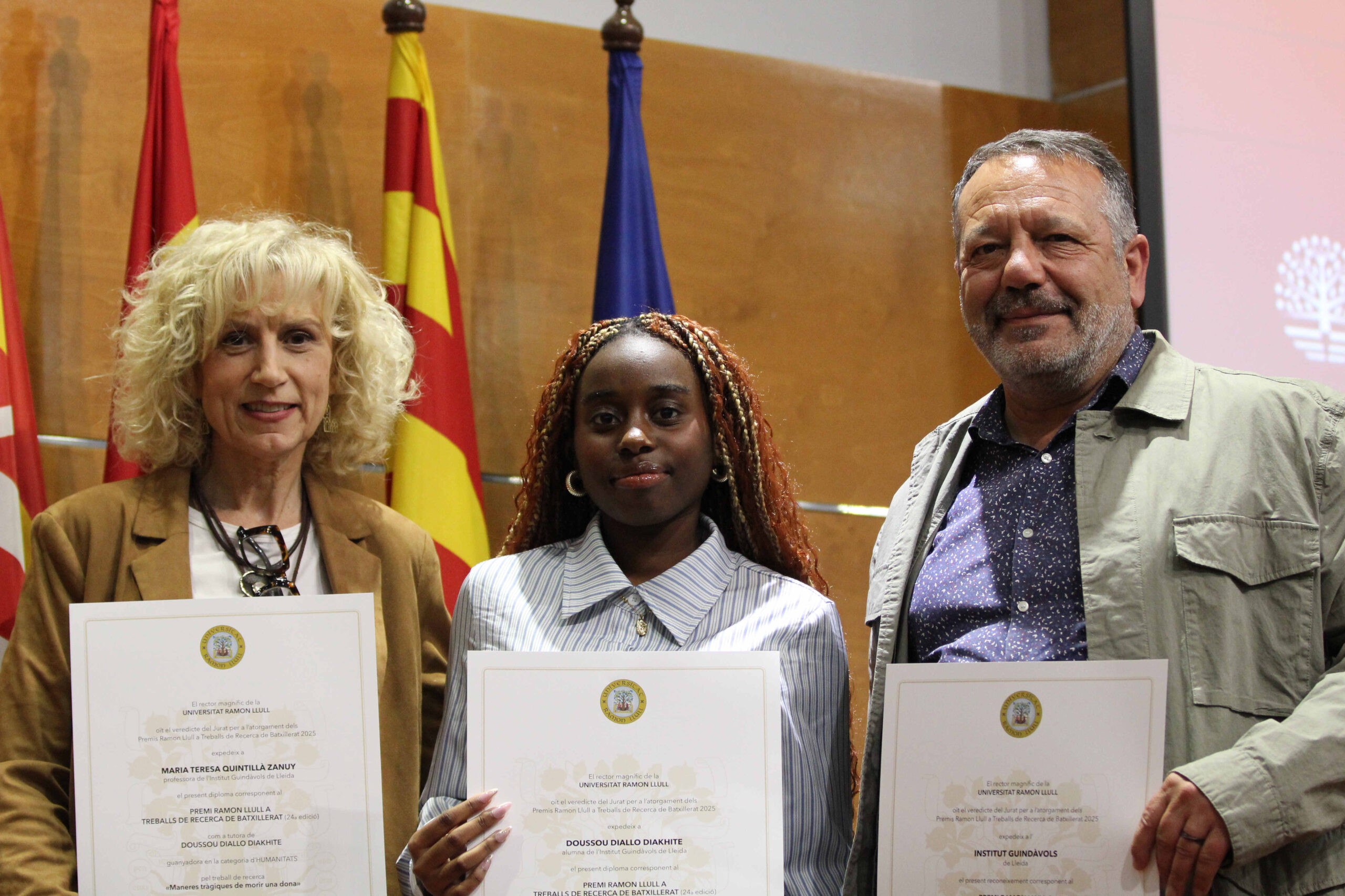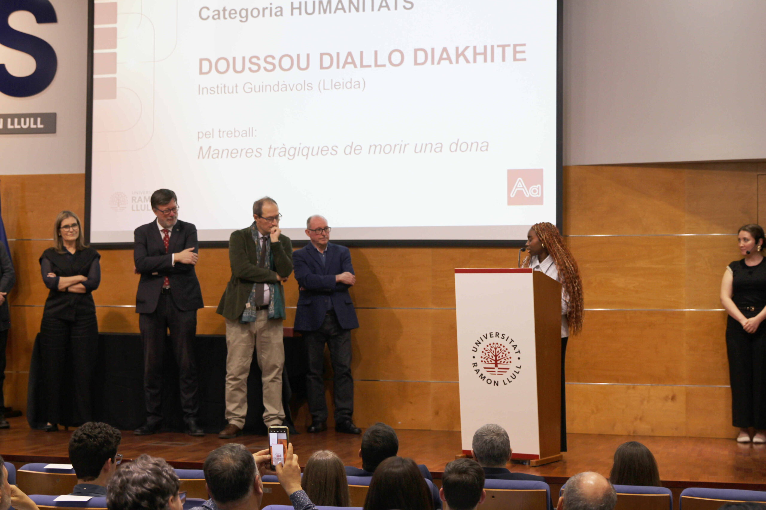 Doussou Diallo Diakhite, alumna nostra de 2n Batxillerat humanístic està de doble enhorabona: d’una banda, ha guanyat el 1r premi d’Humanitats de la XXIV edició dels Premis de Recerca de Batxillerat de la Universitat Ramon Llull, amb el seu Treball de recerca “Maneres tràgiques de morir una dona”, tutoritzat per la professora M.Teresa Quintillà. Dijous 22 de maig es va celebrar l’acte de lliurament dels Premis a la Sala Multimèdia de l’Institut Químic de Sarrià presidit pel Rector de la URV, el Dr. Josep Antoni Rom, en una edició en què s’han presentat 304 treballs de 143 escoles i instituts de tota Catalunya. Més detalls de l’acte de lliurament a: https://www.url.edu/ca/sala-de-premsa/noticies/institucional/2025/url-lliura-11-premis-treballs-recerca-batxillerat