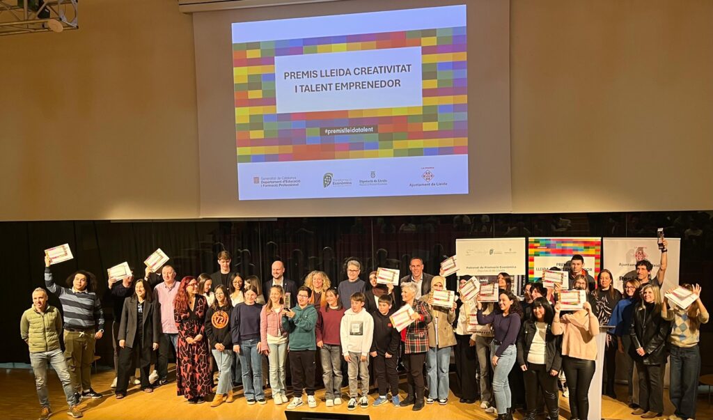 El passat 3 de desembre, la Llotja va acollir el lliurament dels Premis Lleida Creativitat i Talent Emprenedor 2025, que enguany han celebrat la 12a edició. La regidora de Cultura i Promoció de la Ciutat, Pilar Bosch; el vicepresident del Patronat de Promoció Econòmica de la Diputació de Lleida, Jordi Verdú; i el coordinador dels Serveis Educatius dels Serveis Territorials d’Educació a Lleida, Carles Vernet, han estat els encarregats d’entregar els guardons als 12 projectes guanyadors, creats per alumnat d’11 centres educatius de la demarcació de Lleida.
