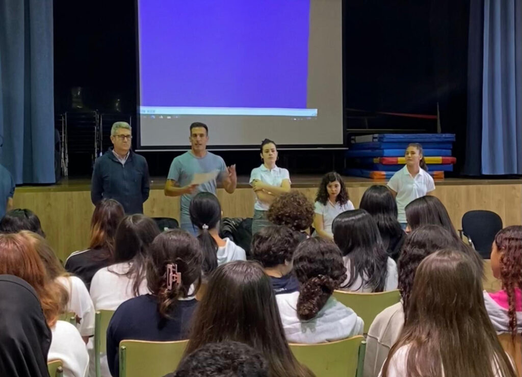 A l’acte hi han assistit Carles Vernet, cap de la secció de Serveis Educatius dels ST d’Educació a Lleida; Xavier Estrada, regidor de l’Ajuntament de Lleida i exàrbitre de futbol; i tres referents de l’esport femení lleidatà representades per Abril Rodrigo, Estel Agost i Eva Pastor. Elles han estat les veritables protagonistes, ja que no només han compartit el relat de la seva experiència personal, sinó que han donat valuosos consells al centenar d’alumnes que les escoltaven. Abril Rodrigo, jugadora de futbol professional a l’AEM i que ha format part de la selecció espanyola sub-17, va iniciar-se en la pràctica d’aquest esport amb només dos anys i empesa per la influència del seu pare com a entrenador de futbol. Per a l’Abril són fonamentals el compromís i l’esforç i “no deixar-se condicionar per les males experiències com lesions o comentaris masclistes” que cal superar gestionant la frustració. Aquesta és també una idea compartida per Estel Agost, esportista de natació adaptada, que a partir dels 17 anys es va veure obligada a anar amb cadira de rodes. Admet que al principi no li agradava ni la natació ni l’aigua i sentia “que no tenia vida”. Ara reconeix que “a l’aigua és el lloc on no necessito ningú que m’aguanti”. Per a ella, en l’àmbit esportiu l’important és tenir referents i, en el personal, és imprescindible el suport de la família i els amics. En el cas d’Eva Pastor, actualment jugadora de patins al Pons de Lleida de segona catalana, va començar a posar-se els patins per seguir l’exemple del seu germà i afirma que “l’esport et regala moments bonics però cal constància i seriositat”. L’objectiu de la jugadora és aconseguir l’ascens de categoria “a poc a poc, perquè s’aconsegueixen coses grans amb passes petites”. De totes maneres, és conscient que el fet de practicar un esport minoritari obliga a buscar recursos per assegurar-se un futur i, en el seu cas, compaginar l’activitat esportiva amb els estudis universitaris.
