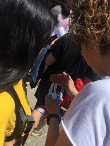 Els dies 23 i 30 de maig vam poder comprovar com el consum de tabac de manera activa i passiva afecta els nostres pulmons. Les nostres referents de l’ICS del programa Salut i Escola van portar informació i també material per pintar al terra un recordatori:  Fem salut, Gràcies per no fumar.