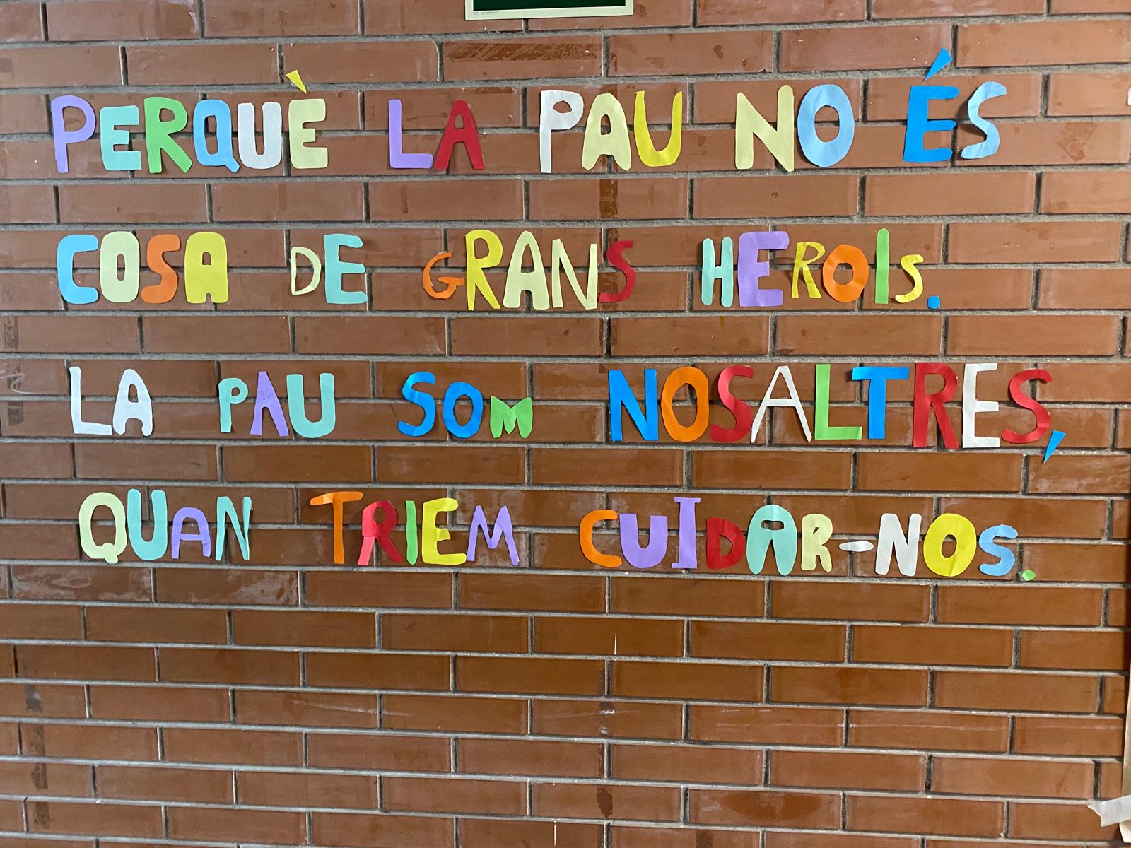 Nosaltres, l’alumnat de 1r d’ESO, volem dir ben alt que la pau comença aquí: a les nostres aules, al pati, als passadissos i a qualsevol lloc on ens trobem. Cada paraula, cada gest i cada decisió poden fer que el nostre institut sigui un espai segur, respectuós i amable.