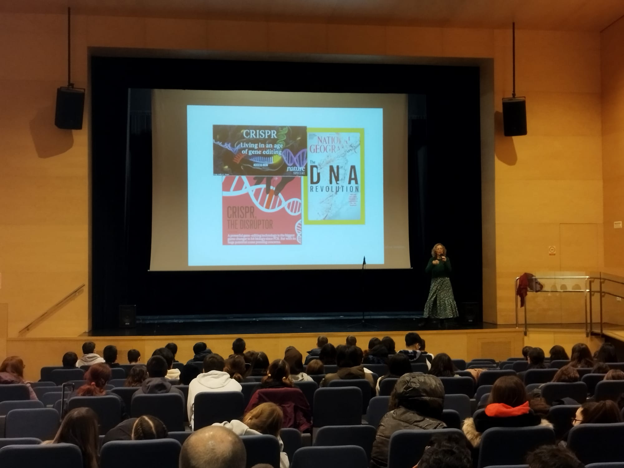 L’alumnat de 1r de batxillerat i de 2n de l’itinerari científic van tenir el plaer d’escoltar la xerrada de la Gemma Marfany Nadal, catedràtica de Genètica i delegada del rector per a la divulgació científica de la Universitat de Barcelona.