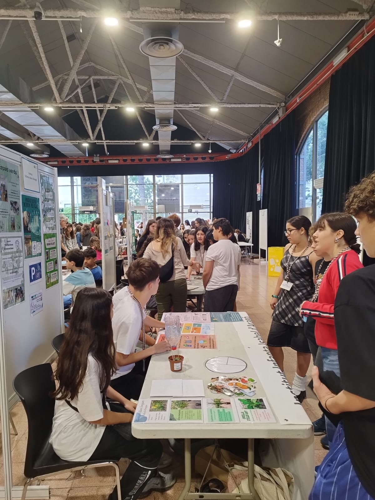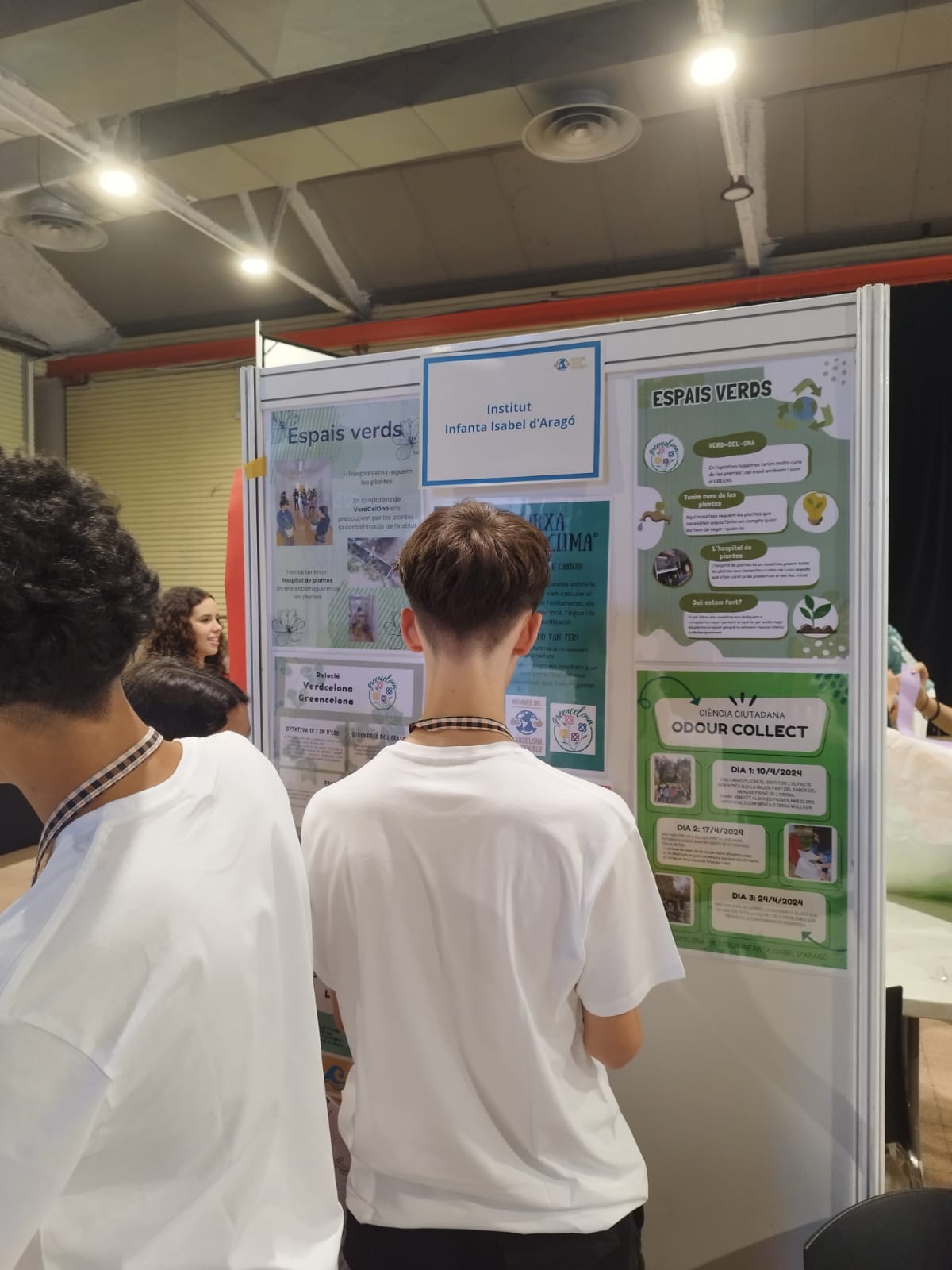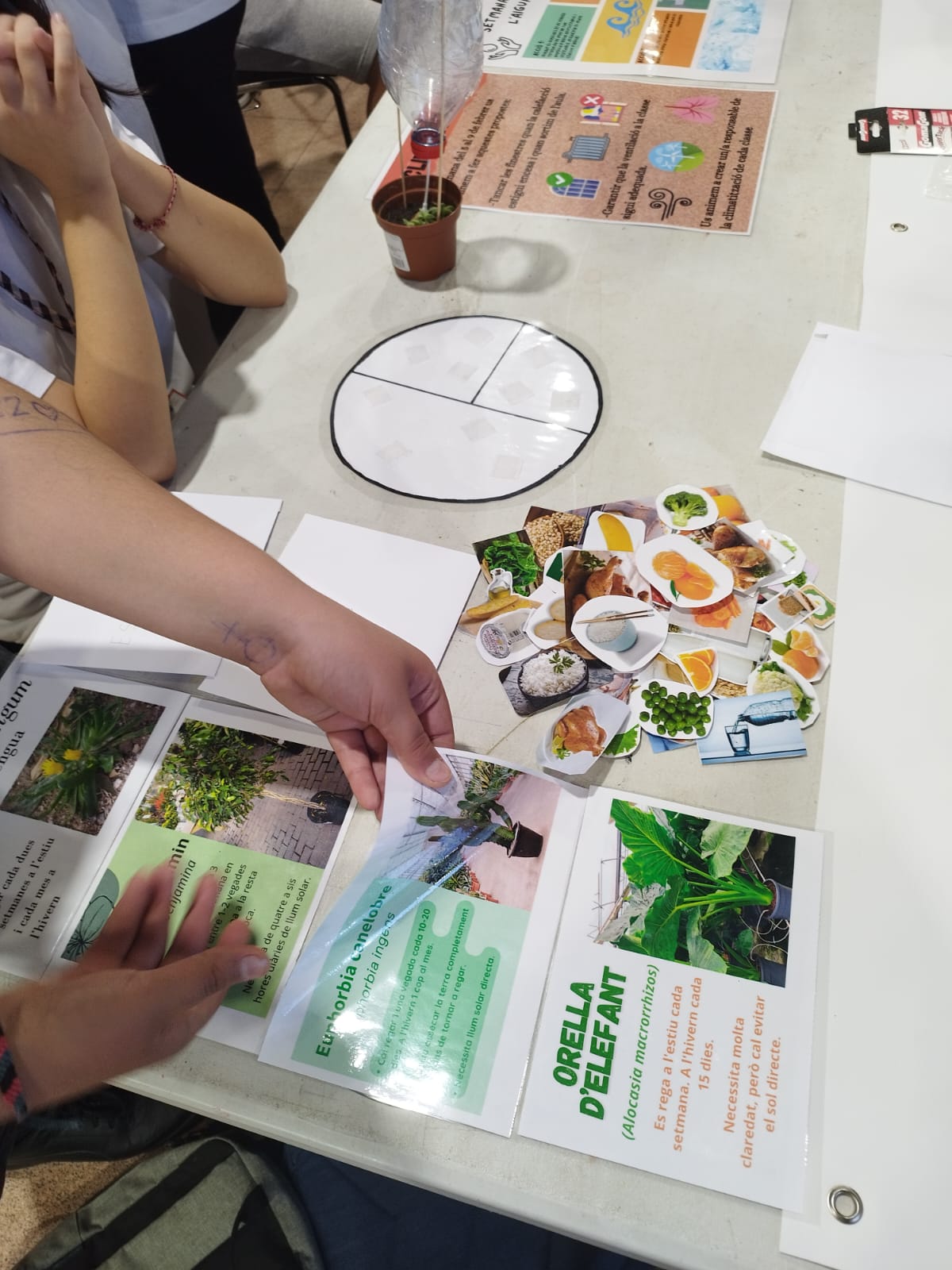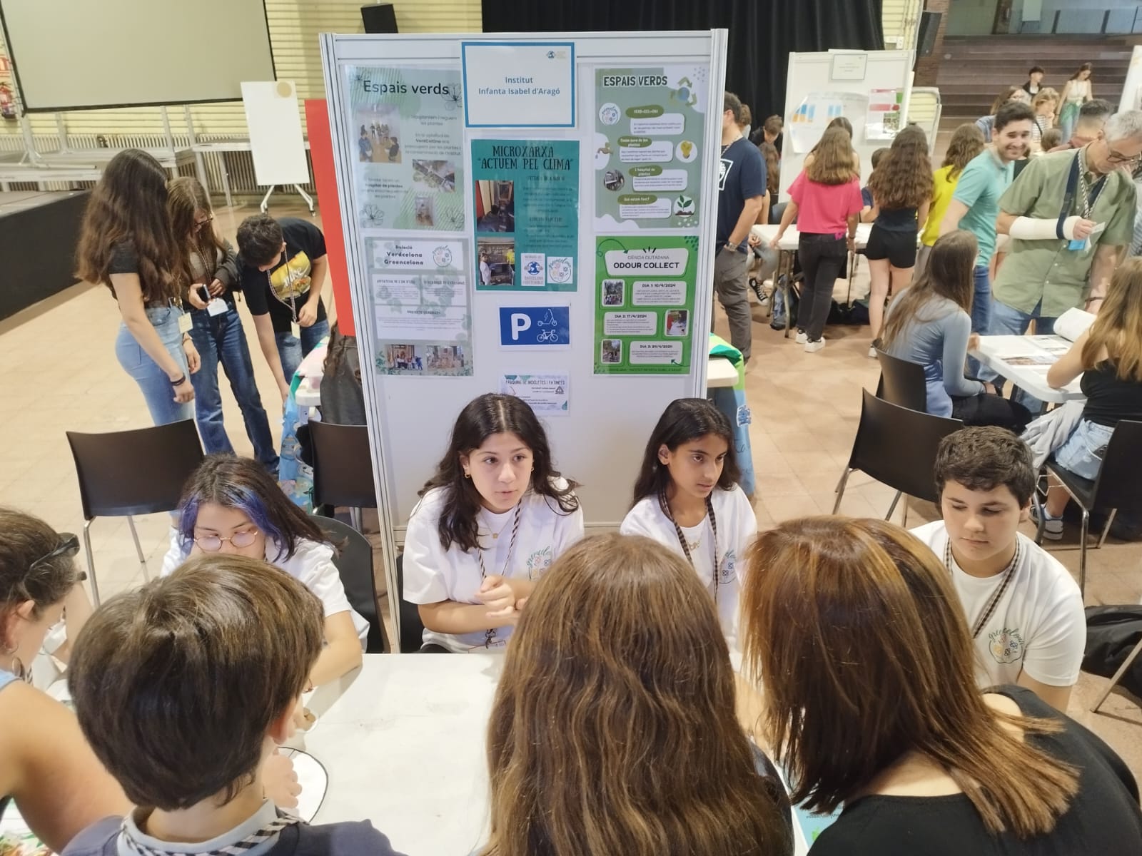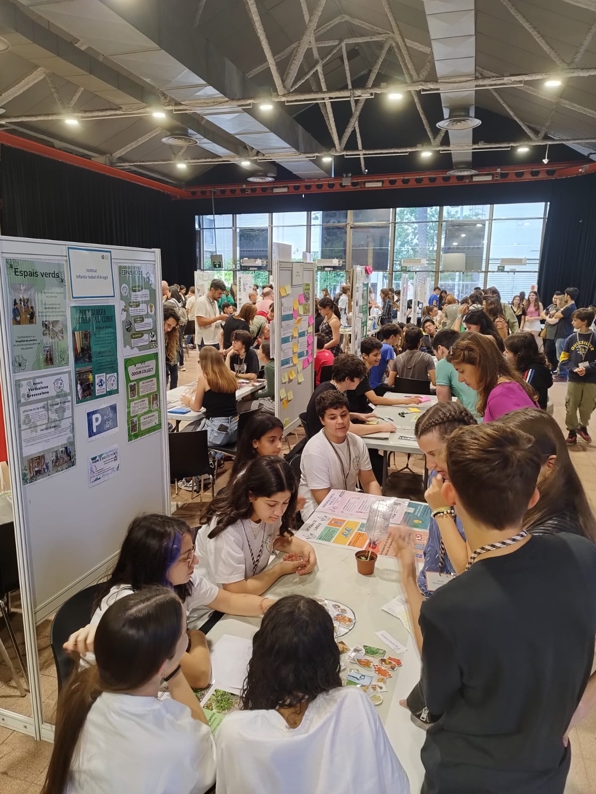 Primer vam arribar i vam posar en una taula el que havíem fet durant tot el curs els de primer i segon d’ESO a l’optativa de VerdCelOna. A continuació ens van donar un paper amb un color i ens vam ajuntar amb alumnat d’altres instituts que teníen el mateix color que nosaltres. Vam haver de crear una oració sobre la sostenibilitat.