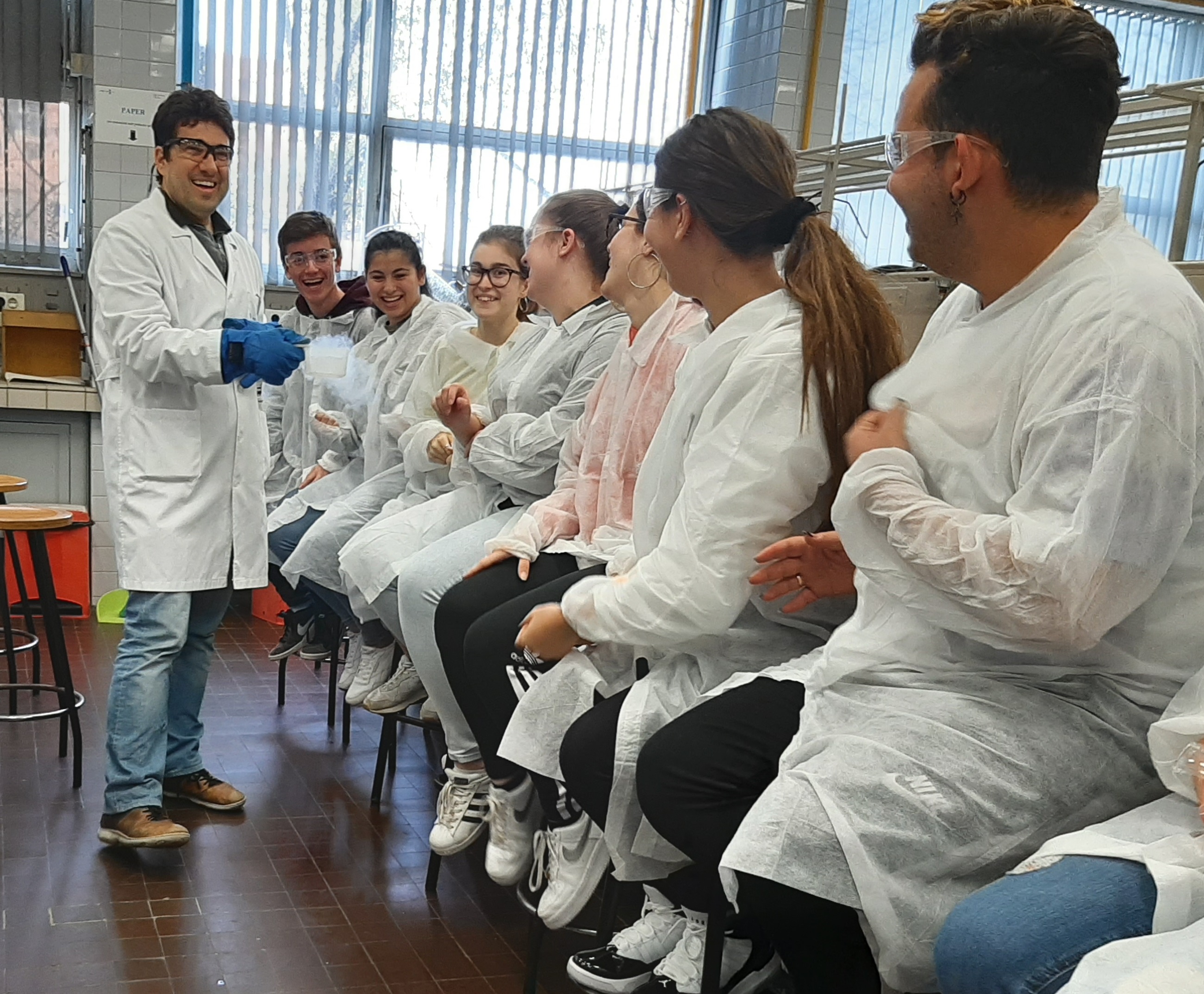 En “El racó del fred” van treballar amb diòxid de carboni sòlid i nitrogen líquid per tal de poder congelar diferents objectes a molt baixa temperatura, A la pràctica “Il·luminen l’escena del crim” s’han convertit en agents del CSI identificant restes de sang gràcies al luminol, en l’escenari d’un hipotètic crim. Amb la cromatografia en capa prima han determinat la presència d’analgèsics en diferents mostres