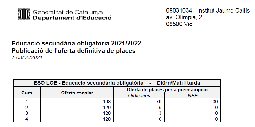 Publicació de la llista d’admesos/es i llista d’espera de preinscripció d’ESO Llegeix més »