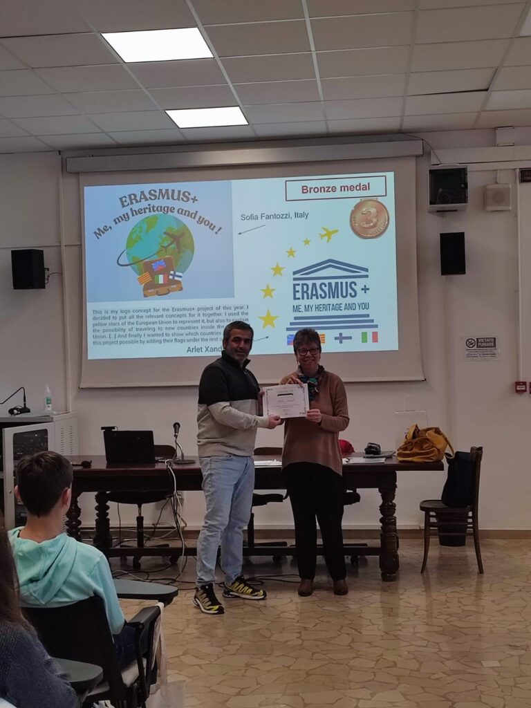 En les fotos podem veure l’entrega de certificats durant la trobada al centre italià de Bologna, el Liceo Laura Bassi, i el recull de certificats pels alumnes guanyadors o bé pels seus representats.