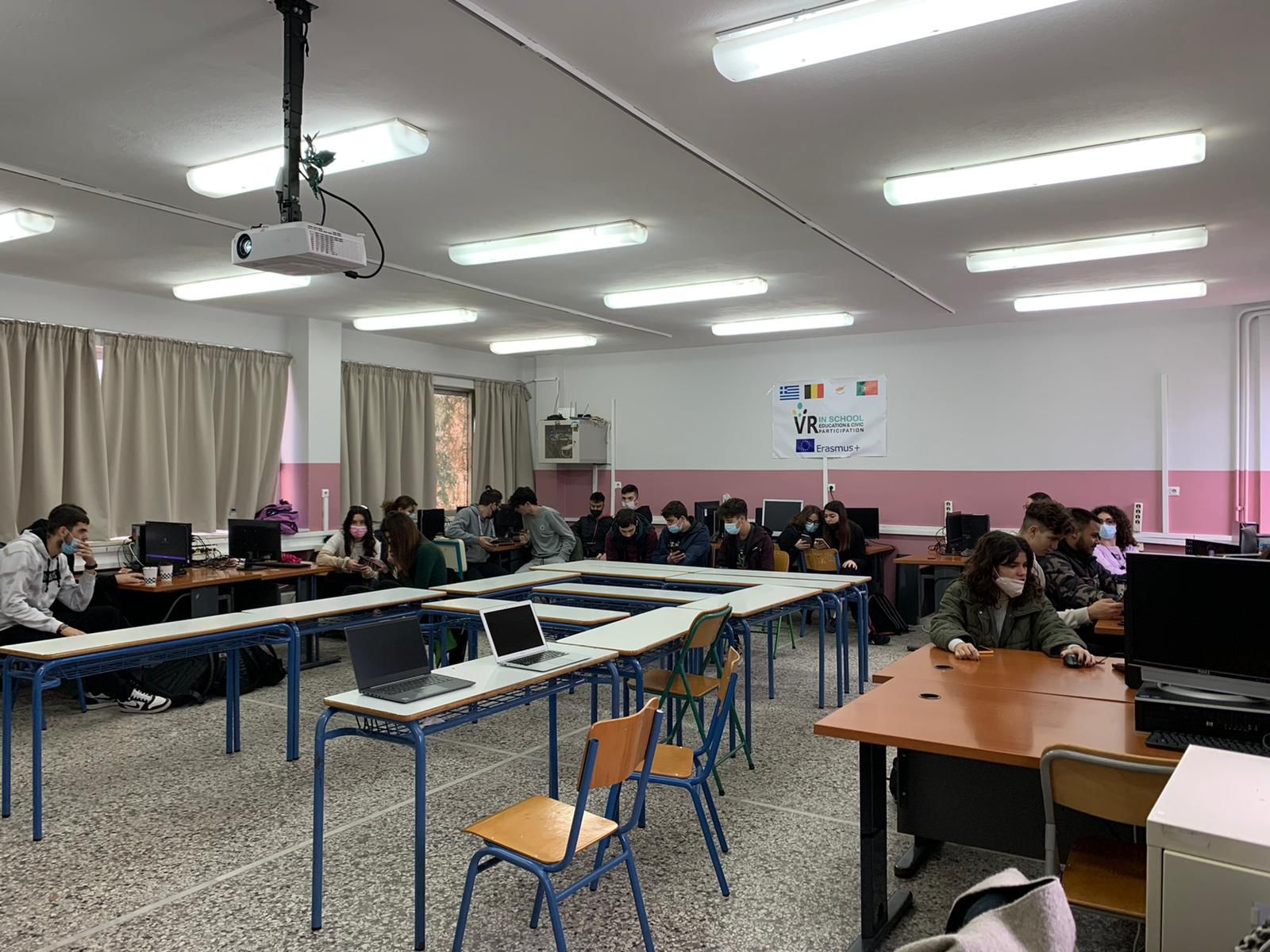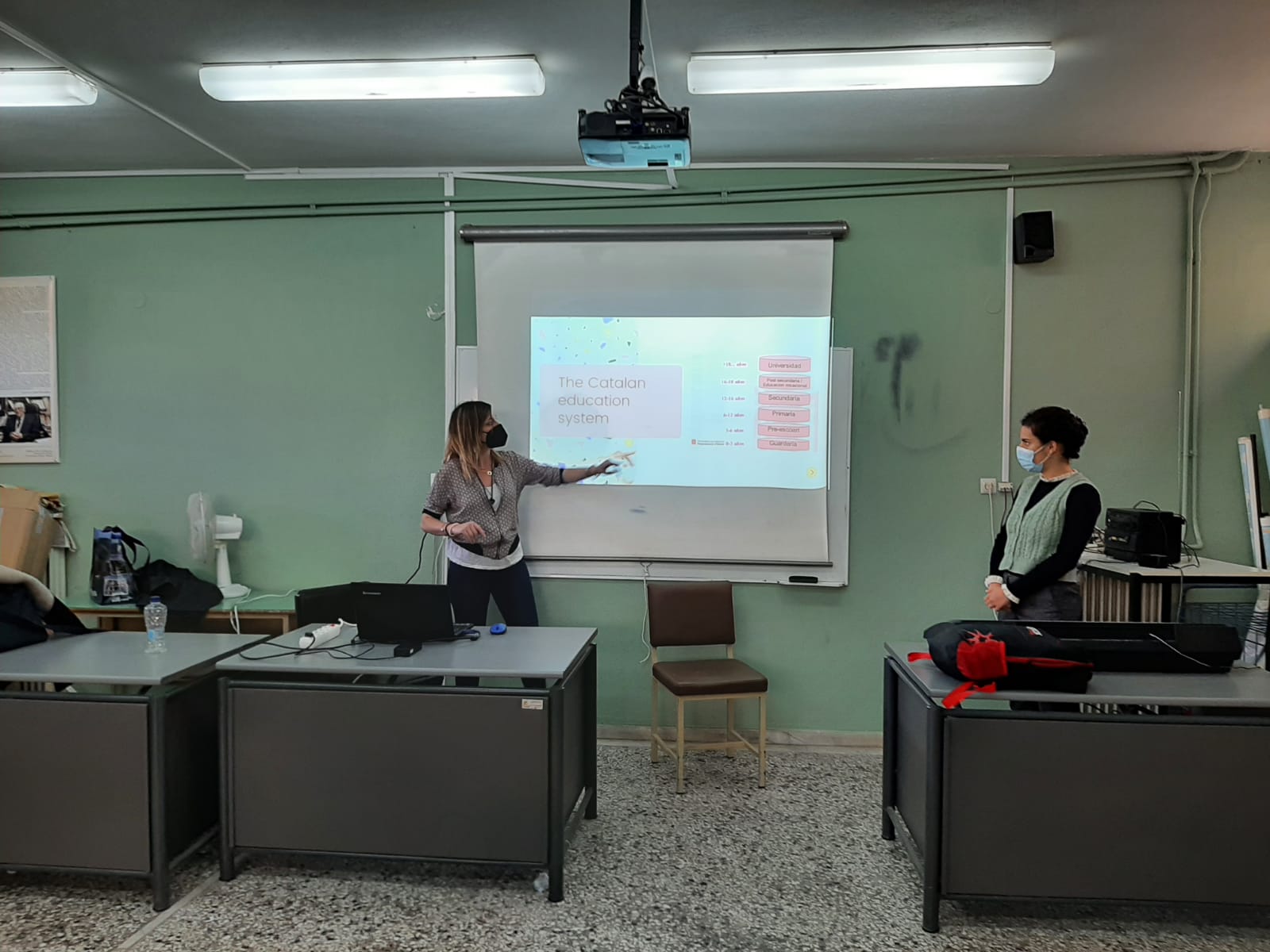 Allà vam conèixer el sistema educatiu grec, vam compartir nous mètodes d’ensenyament relacionats amb les TIC i vam observar classes d’anglès, d’alemany i de francès. També vam explicar-los com funciona el sistema educatiu català i com és el nostre institut. Vam tenir oportunitat de comparar sistemes educatius i, entre altres temes, vam reflexionar sobre l’abandonament escolar prematur, la immersió lingüística catalana i la gestió educativa europea.
