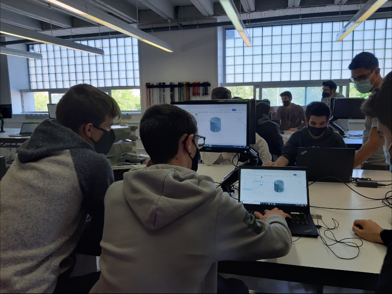 Avui al matí hem tornat a la UVic amb els alumnes de 1r de Batxillerat Tecnològic. Hem participat a tres tallers organitzats pel professorat del grau de Mecatrònica. Un taller d’Assaigs de materials, que ens ha permès observar assajos de tracció i de duresa de diferents metalls, un taller de Modelatge 3D amb Onshape, on hem après diferents conceptes sobre disseny de producte i fabricació digital i les eines bàsiques d’un programa de modelatge 3D d’ús professional i un Torneig de robòtica amb micro: bit, que ha fet descobrir a l’alumnat noves maneres de programar i interactuar entre el món digital i físic, d’una forma lúdica i cooperativa.