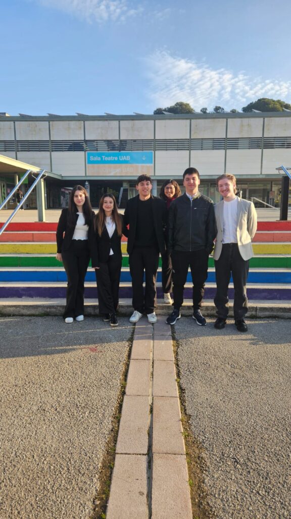 El nostre equip de debat 💬 de segon de batxillerat va executar una gran actuació a la competició de debat acadèmic de la Xarxa Vives d’Universitats, celebrada a la Universitat Autònoma de Barcelona (UAB). Després d’una fase classificatòria de molt nivell, en què van aconseguir dues victòries i un empat, l’equip ha arribat fins a les semifinals del torneig, demostrant un alt nivell de preparació i argumentació 👏👏🥳.