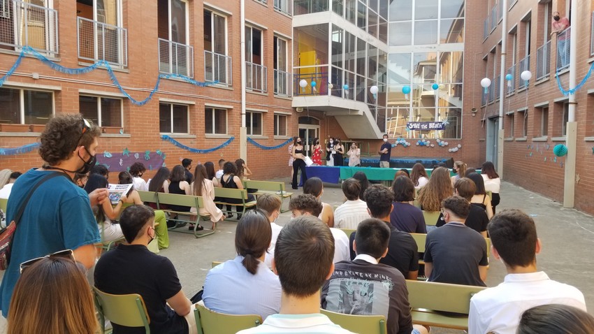 Dimarts passat, 15 de juny, vam celebrar la graduació de l’alumnat de 2n Batxillerat. Seguint les normes COVID només van poder assistir els alumnes, separats per grups bombolla (2BA-2BB), i els seus professors. La celebració va tenir lloc a l’aire lliure, al pati interior. Primer es van repartir les orles a tots els alumnes, un cop escoltat el discurs d’una de les alumnes, l’Aitana Porras.