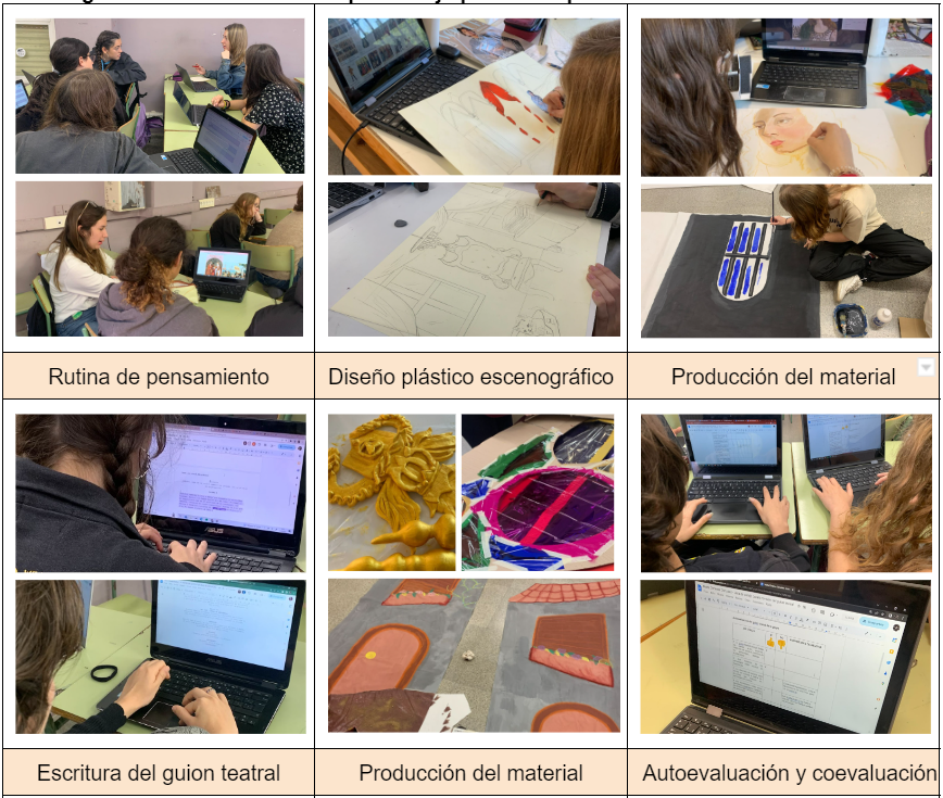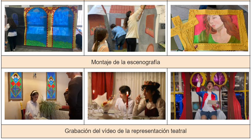 A la matèria de Llengua Castellana han estat treballant el període del Segle d’Or i, concretament, els autors i obres teatrals més rellevants. Després, han elaborat una proposta de guió literari. Paral·lelament, a Volum han estat treballant l’escenografia. Primer han fet propostes individuals sobre com podia ser i, més tard, han acabat fent una en grup. L’han materialitzat creant diferents materials com quadres, vidreres, murals… que després han fet servir en els vídeos que han gravat.