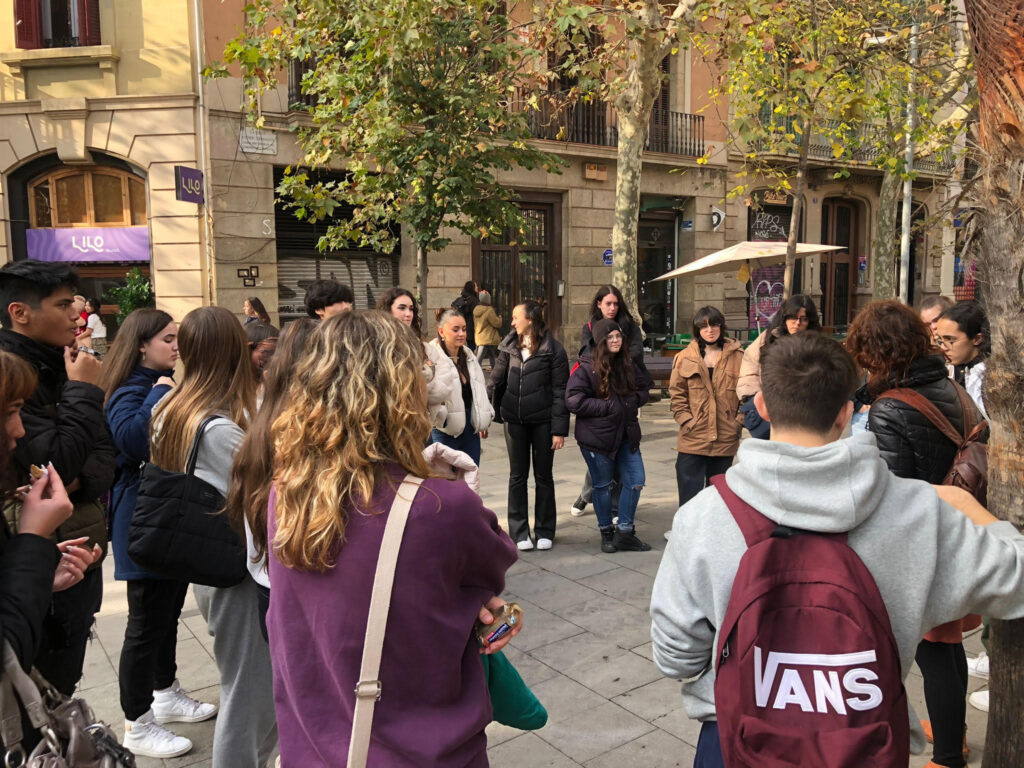 Durant la ruta, vam recórrer alguns dels escenaris del llibre com la Universitat de Barcelona, el Carrer Aribau, el Barri Gòtic o el Raval.