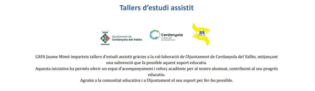 Vols saber més? Us adjuntem l’oferta d’activitats extraescolars per la propera temporada 2025-2026, esperem que sigui del vostre interès. Aquest any com a novetat tenim l’APP per millorar la comunicació amb les famílies, heu d’anar a la pàgina http://dae.emotium.cat. Si teniu qualsevol dubte si us plau ens podeu trucar al telèfon 650862143 o enviar correu electrònic a dayanis.guerra.carballoso@gmail.com.
