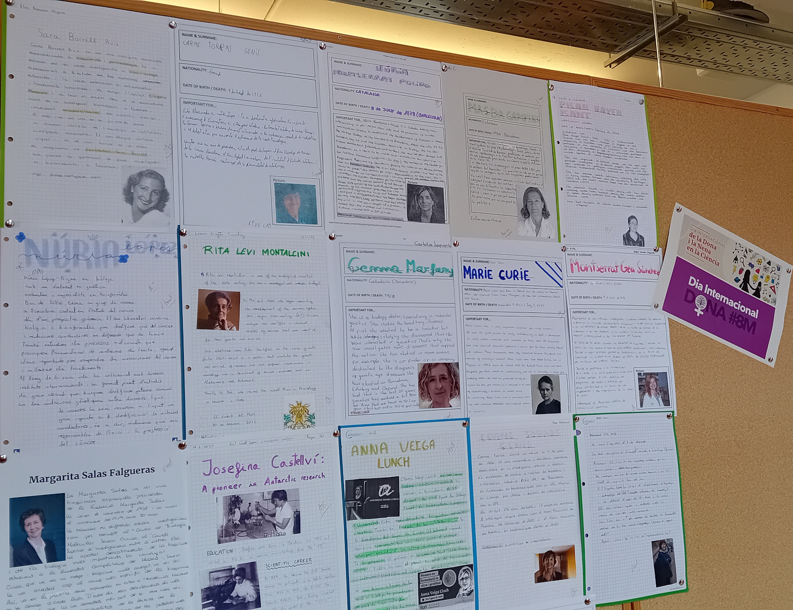 Per commemorar els dos fets, l’alumnat de 3r d’ESO ha buscat informació sobre dones que han tingut i/o tenen un paper rellevant en la investigació i el progrés científic i ho han exposat oralment als seus companys/es. En podeu veure unes mostres al primer pis de l’institut.