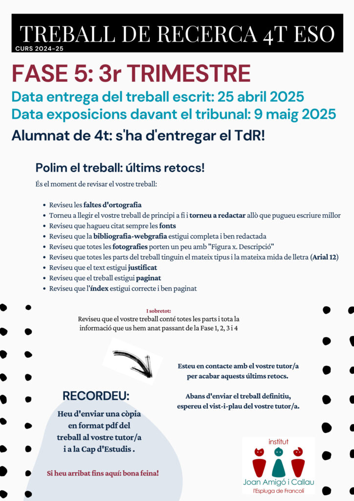 Fase 5: Treball de recerca de 4t d’ESO Feu un comentari / Per Institut / 13/03/2025 / ESO 4 Portada / treball de recerca