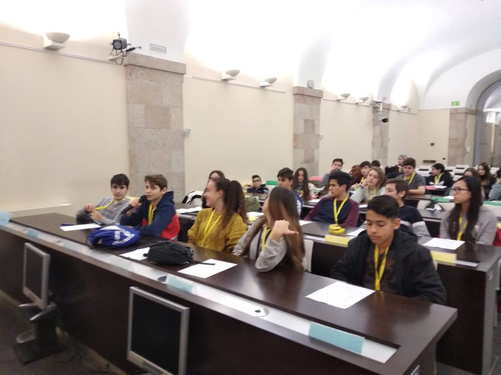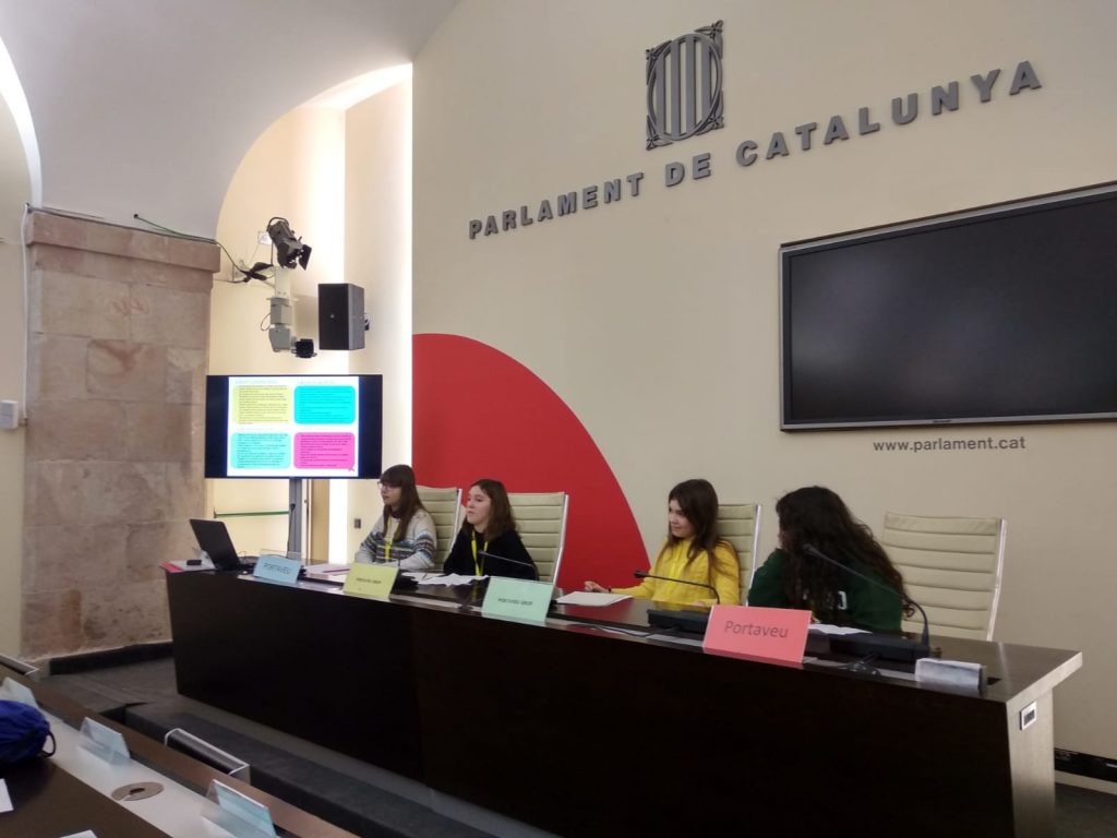 El passat dilluns 4 de febrer, els alumnes de 3r d’ESO de l’institut Joan Amigó i Callau van visitar el Parlament de Catalunya on van realitzar un taller que consistia en exercir de diputats. Prèviament, ja havien constituït uns grups parlamentaris tot preparant unes propostes (cinc per grup) referents a diferents à mbits com l’educació, la salut o el foment, per tal de presentar un programa electoral. Un cop fet aquest treball es va escollir un o una portaveu per a cada grup.